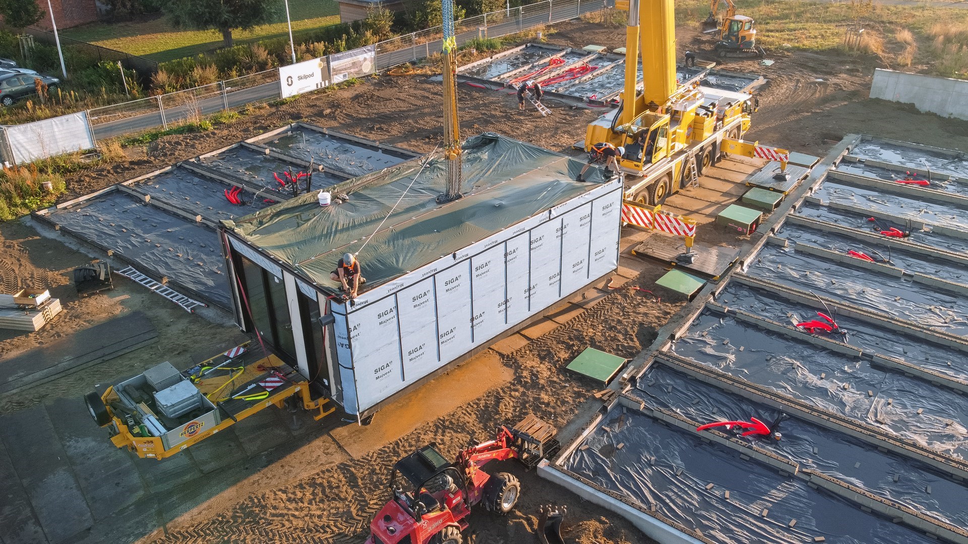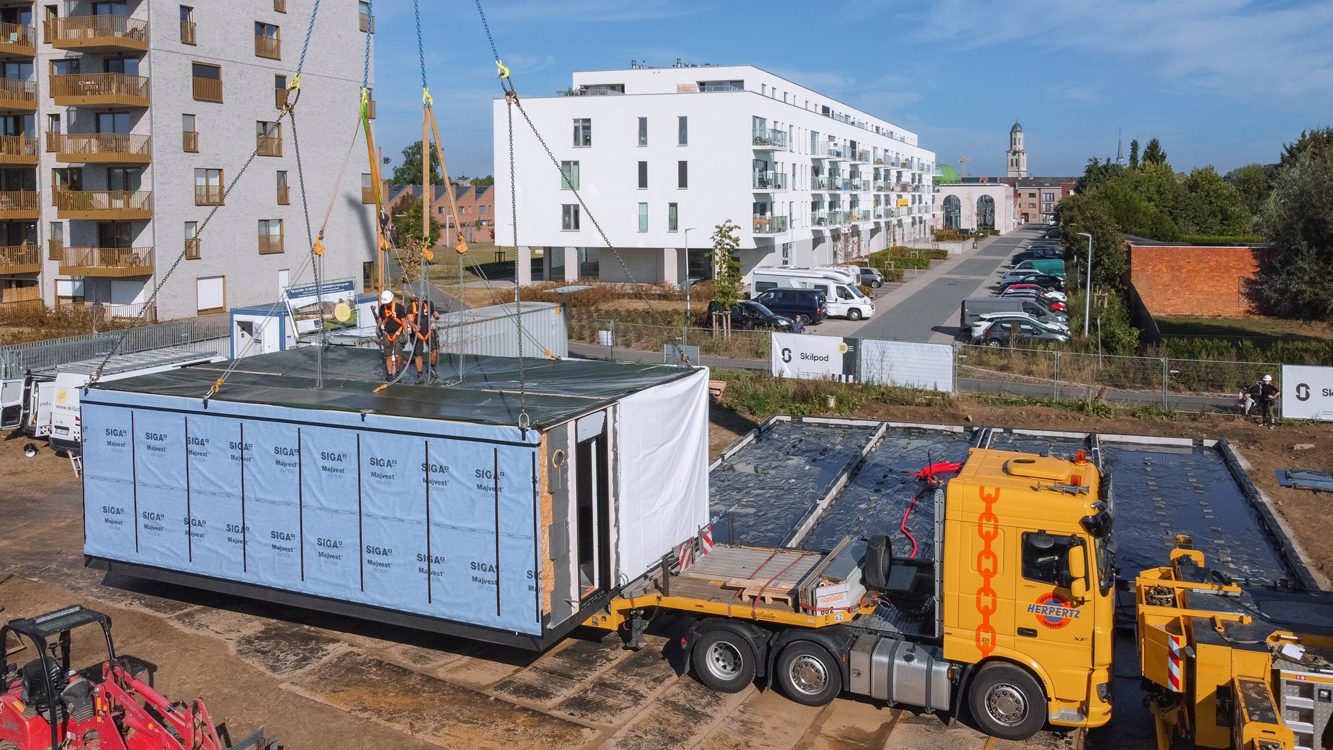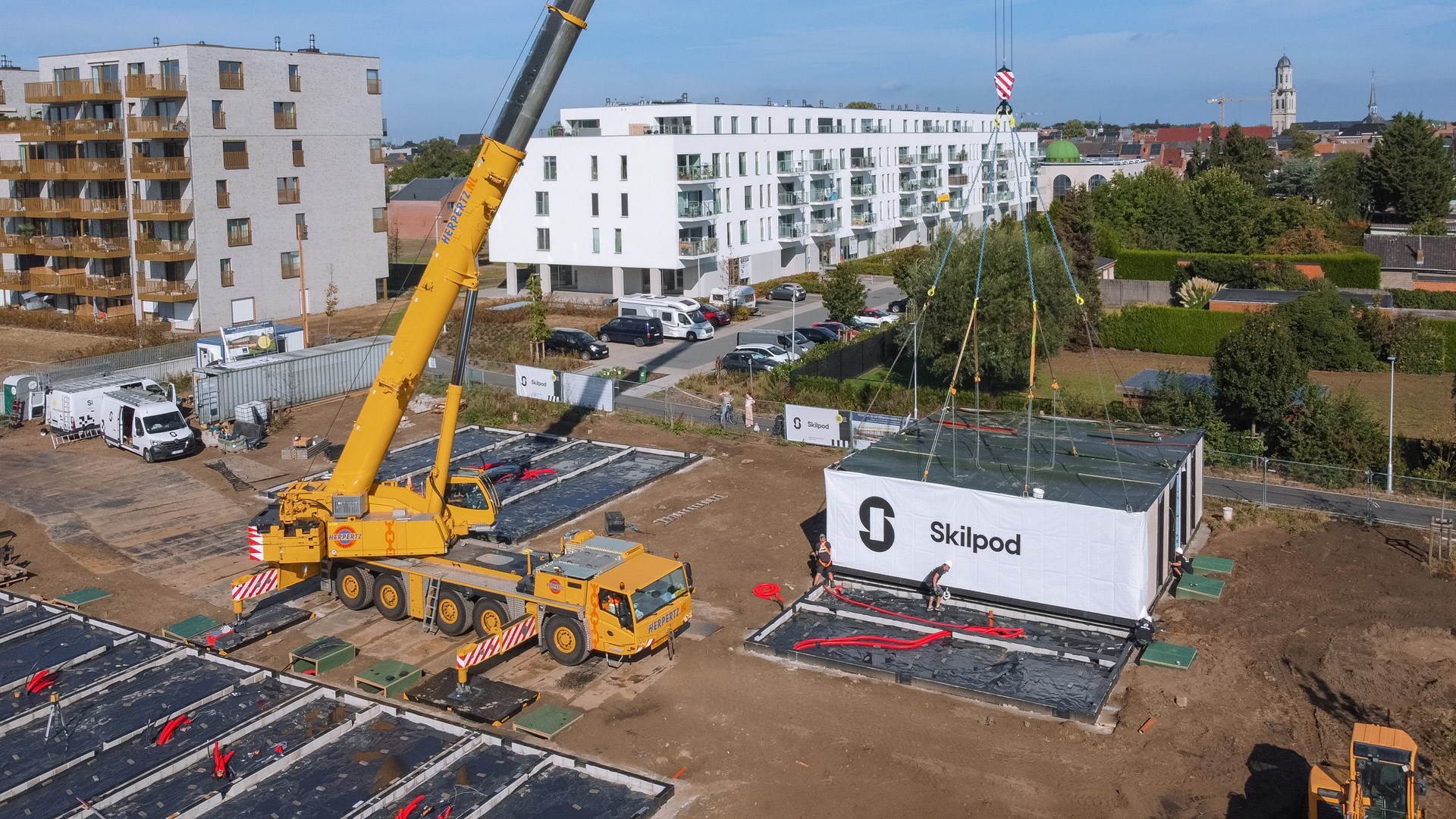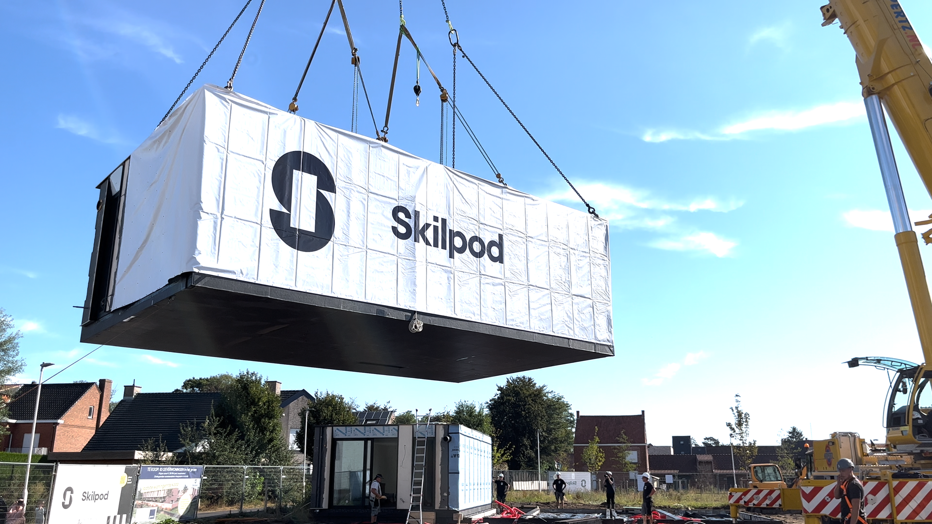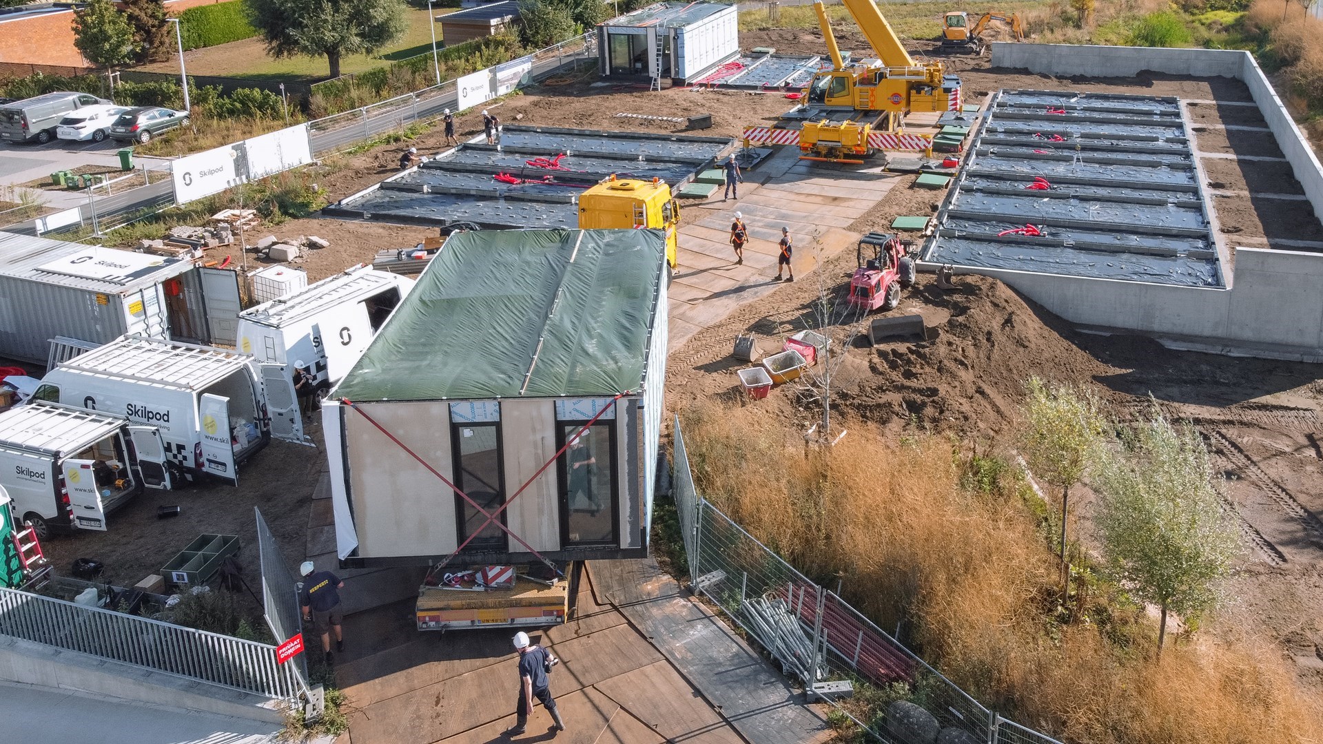 Volgens modulair bouwbedrijf Skilpod uit Geel kan bouwen een pak sneller én voor dezelfde kwaliteit. In amper vier dagen tijd verrijst een heel nieuwe woonbuurt op de Hoedhaarsite in Lokeren. “Een ongeziene realisatie in ons land”, benadrukt Filip Timmermans, mede-oprichter van Skilpod.