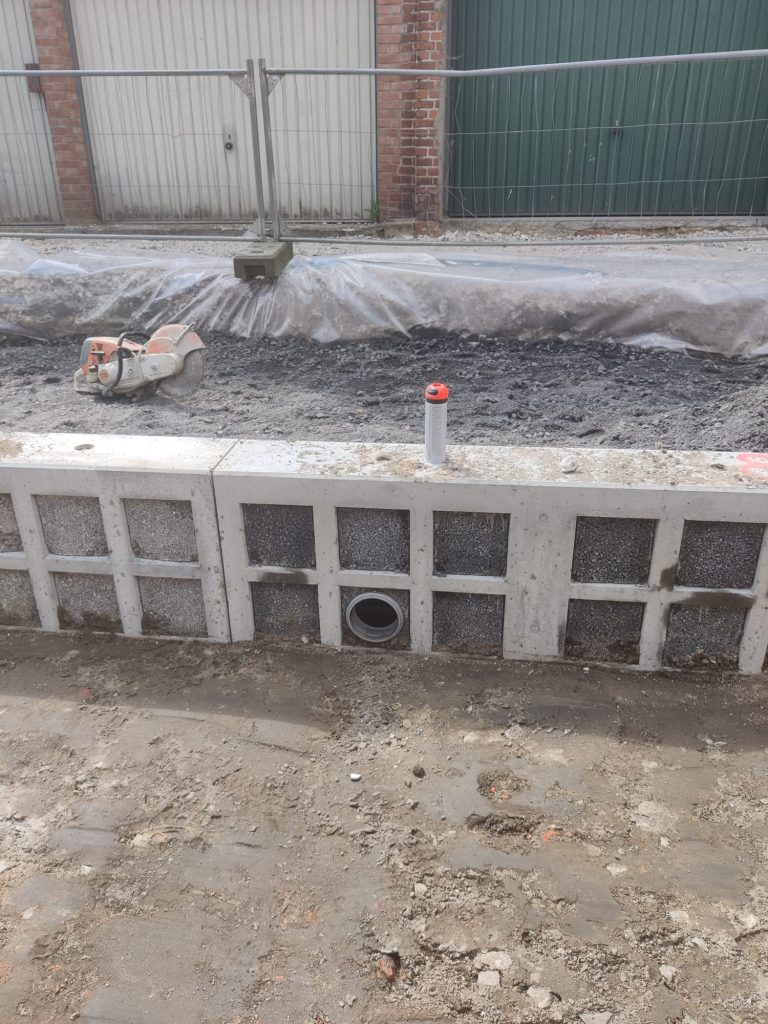 Deze geïntegreerde opbouw toont aan dat volwaardige infiltratie onder verharding perfect mogelijk is, ook in smalle stedelijke straten.