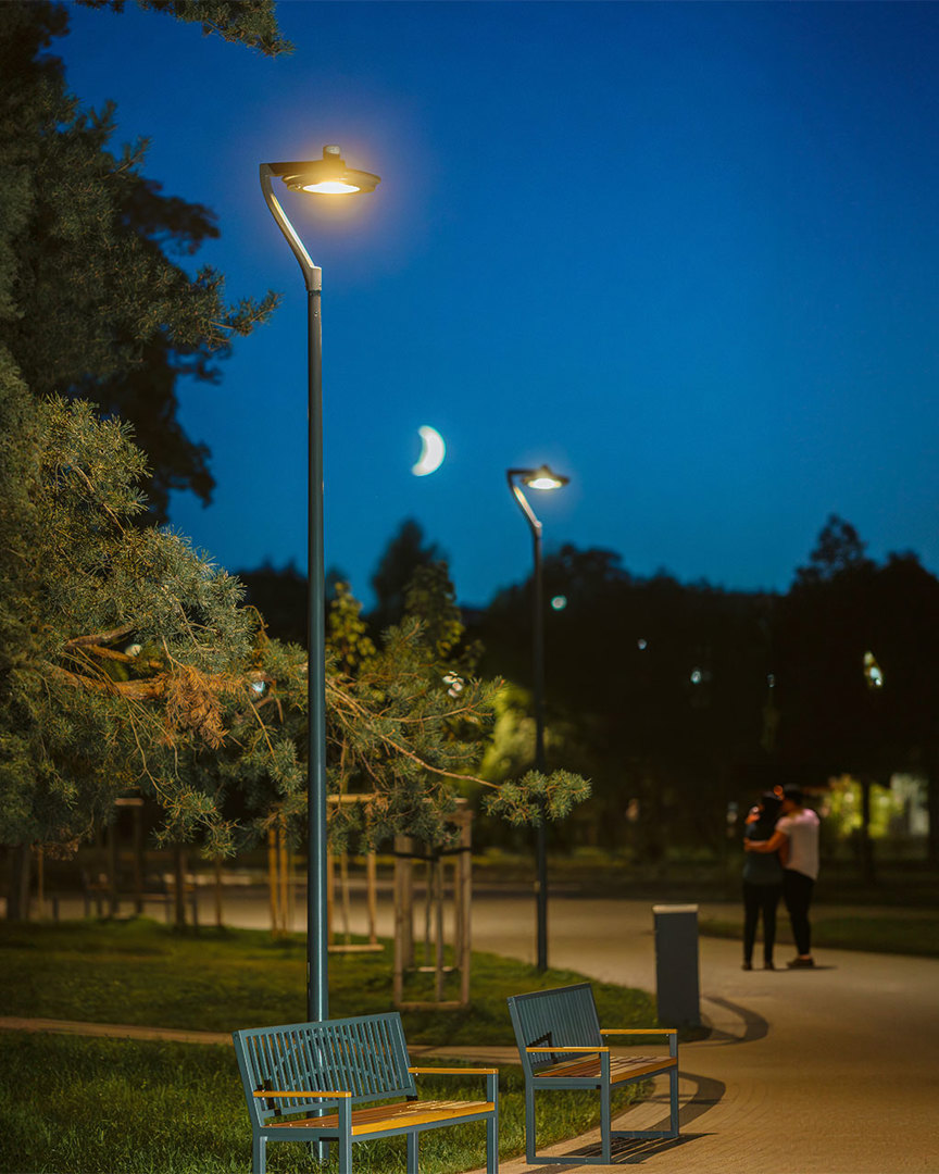 Om het park ook in de avonduren toegankelijk en aangenaam te houden, kozen de ontwerpers voor een duurzame verlichtingsoplossing. De armaturen moesten niet alleen energiezuinig zijn, maar ook het nachtbeeld van het park versterken zonder overlast te veroorzaken voor mens en dier.
