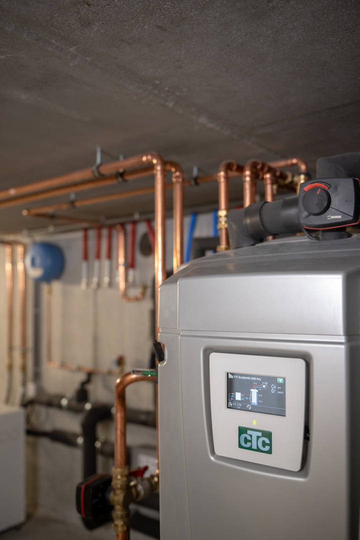 Met 420 m² vloerverwarming en vier badkamers lag de lat hoog. Werner koos daarom voor een geothermische combinatie van de CTC EcoPart 616M en de EcoZenith i555 Pro. “CTC biedt systemen die niet alleen krachtig zijn, maar ook flexibel inzetbaar in complexe renovaties”, legt hij uit.
