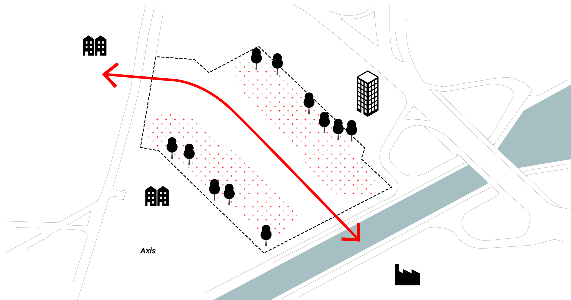 De site wordt volledig publiek doorwaadbaar. Een openbare weg voor voetgangers en fietsers verbindt de Walcourtwijk met het kanaal. Aan het kanaal wordt het hoogteverschil tussen de promenade en het kanaal overbrugd met een brede zuidgerichte trappenpartij. Die vormt het trotse gezicht van het project en betrekt de aangrenzende gebouwen rond een centrale, groene ruimte langs het water. Nog een verbindende factor voor de site wordt de groenaanleg. Die maakt van de site een groene long in de stad en vormt tegelijk een natuurlijke buffer voor de rondgelegen wijk.
