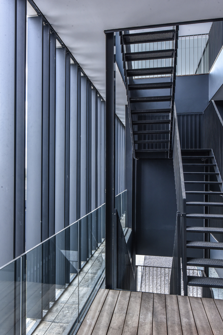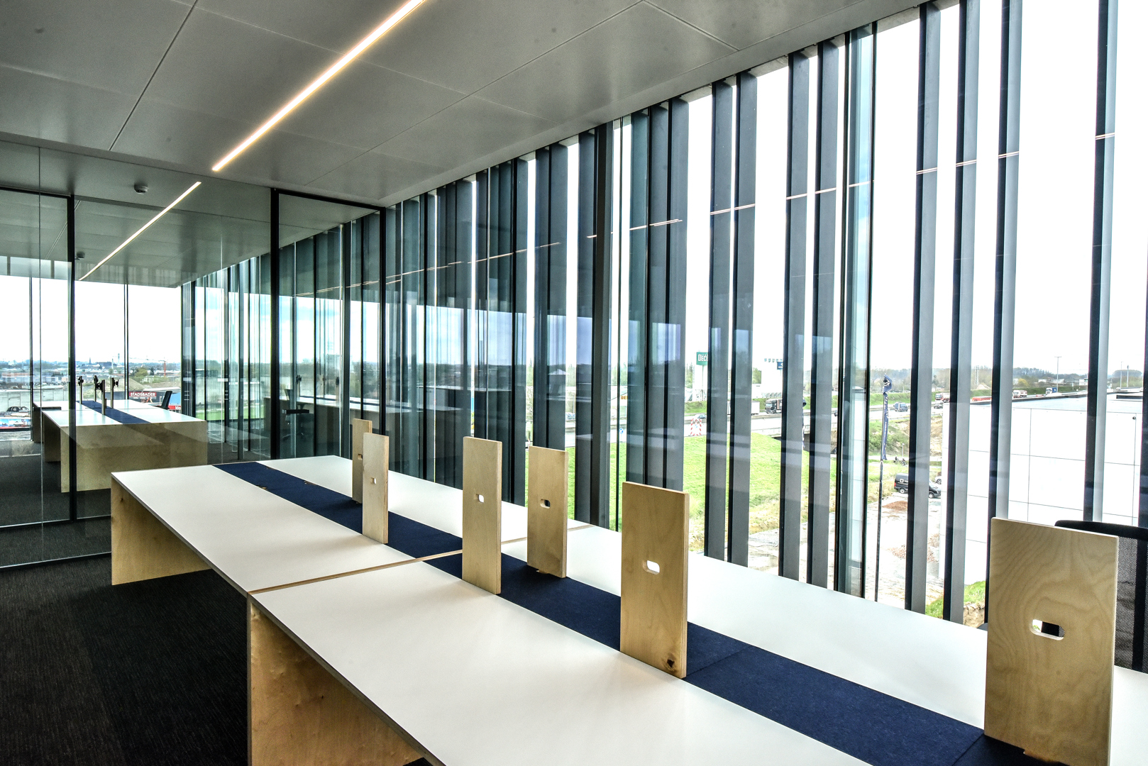 Het binnenklimaat is daarbij een sturende ontwerpfactor. In de winter kan zonlicht gecontroleerd bijdragen aan de warmtebalans, terwijl in de zomer de gevelaanpak en zonbeheersing precies bedoeld zijn om directe instraling en warmteopbouw te beperken. Die seizoenslogica maakt dat de kantoren helder en licht blijven zonder in warme periodes in een broeikas te veranderen. Het comfort wordt dus niet afgedwongen met zware installaties, maar voorbereid via de combinatie van transparantie, tempering en thermische inertie.