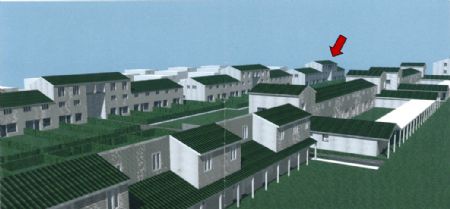Inplanting met de acht eenheden, rechts boven staat de 'passieve boerderij'