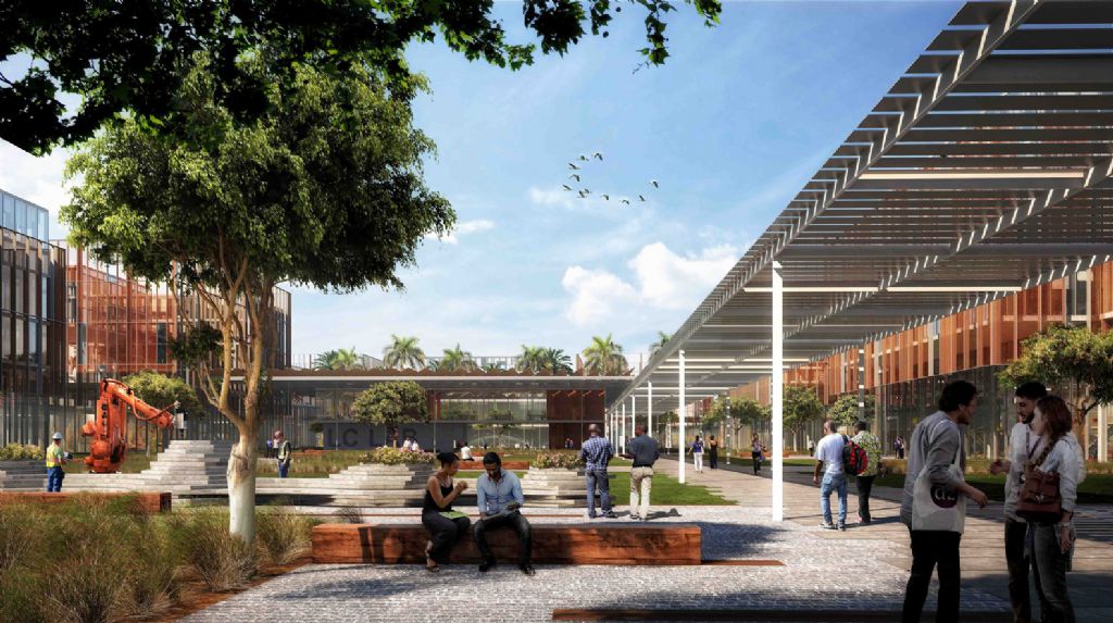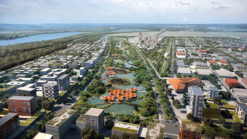 Centraal in het plan staat een park van veertien hectare dat gebruikt zal worden voor het organiseren van evenementen. Een grote boulevard verbindt de commerciële, ondernemings- en onderwijsgebieden in het noorden met het industriegebied in het zuiden.