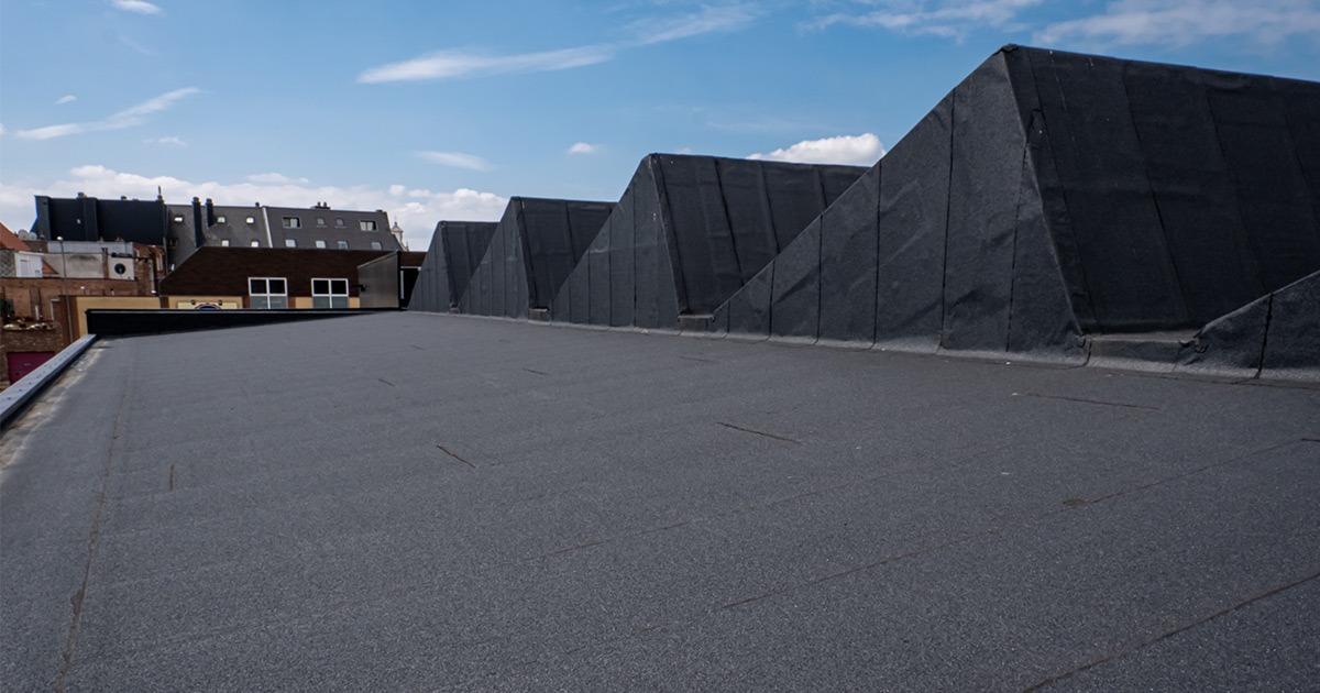 “Mathieu Gijbels schakelde ons in nadat al een deel van het gebouw was uitgebroken.”, zegt Dillen. “Een deel van het dak was volledig afgebroken tot op de spanten. Aan ons de taak om die daken weer op te bouwen en de overige daken volledig te vernieuwen en ze een nieuw jasje te geven.” Omdat het pand van Euro Shop vier verschillende soorten daken op één gebouw heeft, was de aanpak van de waterdichting telkens anders. “Een groot deel is overlaagd.”, aldus Dillen. “Naast het branden van roofing op roofing hebben we ook bitumen toplagen op andere delen van het dak mechanisch bevestigd. Op weer andere delen moest de SBS-dakbedekking worden verkleefd. Bij sommige stukken zorgden we voor extra dakisolatie en hebben we de koudebruggen tussen de beschermde volumes weggewerkt.”