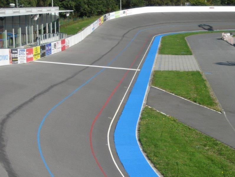 Voor het Antwerps Wielercentrum werd geopteerd voor een rolplastiek. “Het provinciebestuur is te rade gegaan bij de markeerder, die ons product kent. Hij heeft ons advies gevraagd, waarop wij hebben aangeraden om met rolplastiek te werken,” vertelt Tony Overlaet van Triflex.