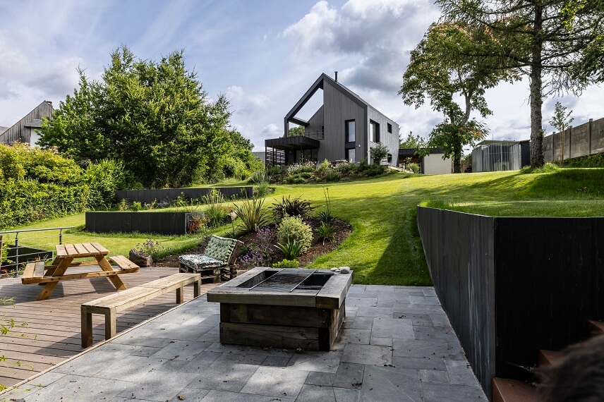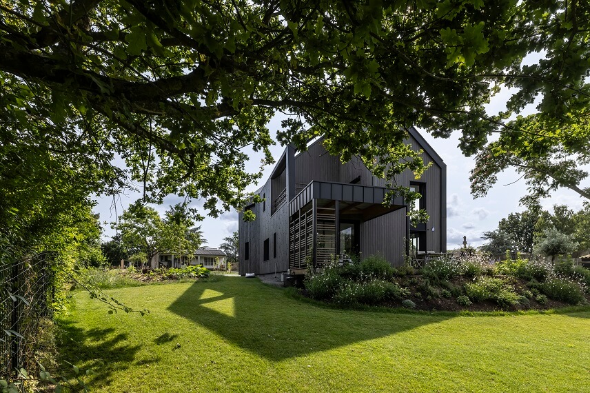 De essentie van het project schuilt in het perfecte huwelijk tussen moderniteit en de omringende natuur. De gevel, die bekleed is met een combinatie van verticaal hout en de innovatieve CUPACLAD Design Waterfall-oplossing, heeft een opvallende uitstraling en creëert een unieke visuele harmonie. Deze gedurfde combinatie roept de majestueuze verticaliteit van bomen op en past bijgevolg perfect in het landschap.