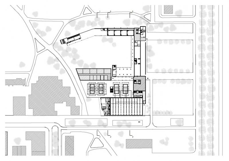 De verschillende volumes zijn opgesteld volgens een optimale noord-zuidoriëntatie. De kopse gevels met grote raampartijen bevinden zich oost en west. De zuidgevel kreeg een ritmisch bandraam, dat volgens de ontwerpers de IGLO-straat definieert. De noordgevel zal als grens voor de buitensportvelden dienen. Bovendien zal de sporthal de passiefhuisstandaard halen.