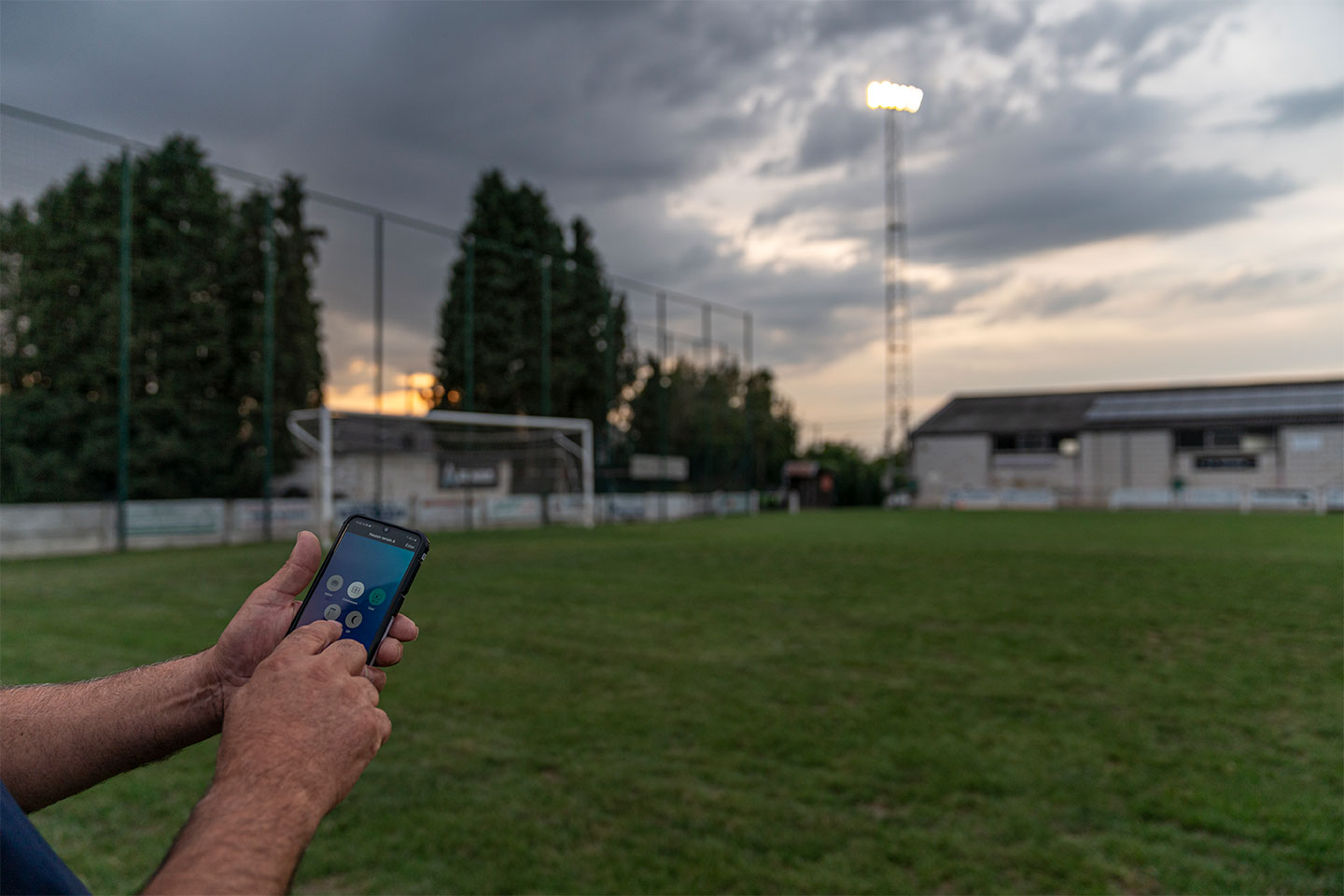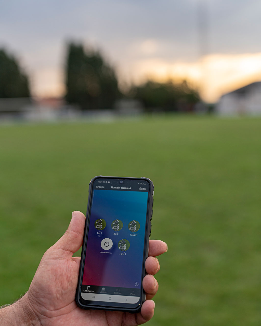 Alle armaturen zijn uitgerust met het Schréder ITERRA besturingssysteem. Dankzij die draadloze beheersoplossing op afstand kunnen de bestuurders van de club het verlichtingsniveau makkelijk aanpassen aan het gebruik van het veld. Met de app op hun smartphone verminderen ze de lichtintensiteit van het A-veld van 120 lux naar 80 lux wanneer er wordt getraind, of verlichten ze het terrein maar voor de helft. Er werd ook een schakelaar in de club geplaatst die is geprogrammeerd om de velden op 80 lux te verlichten. Ook die lichtintensiteit kunnen de bestuurders makkelijk via de app verhogen. Dankzij het lichtbeheer dat is afgestemd op het reële gebruik kan de club dus zijn energieverbruik en zijn elektriciteitsfactuur verder verlagen.