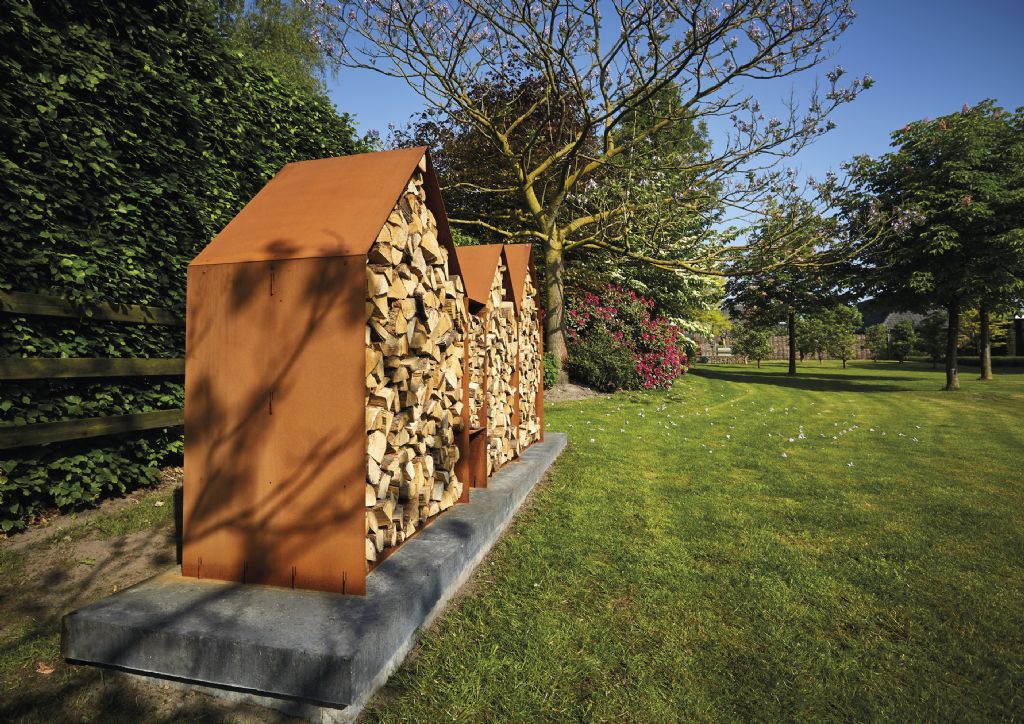 Het basispakket van dit buitenmeubel uit Cortenstaal bestaat uit 11 uitgelaserde delen die als flatpack vervoerd kunnen worden. De onderdelen zijn makkelijk en snel te monteren. Het dak wordt met enkele bouten in vorm gezet. De huisjes zelf krijgen de nodige stabiliteit door ze met tussenstukken in elkaar te schuiven, waarvoor eenvoudige insnijdingen in het plaatmateriaal zijn voorzien.