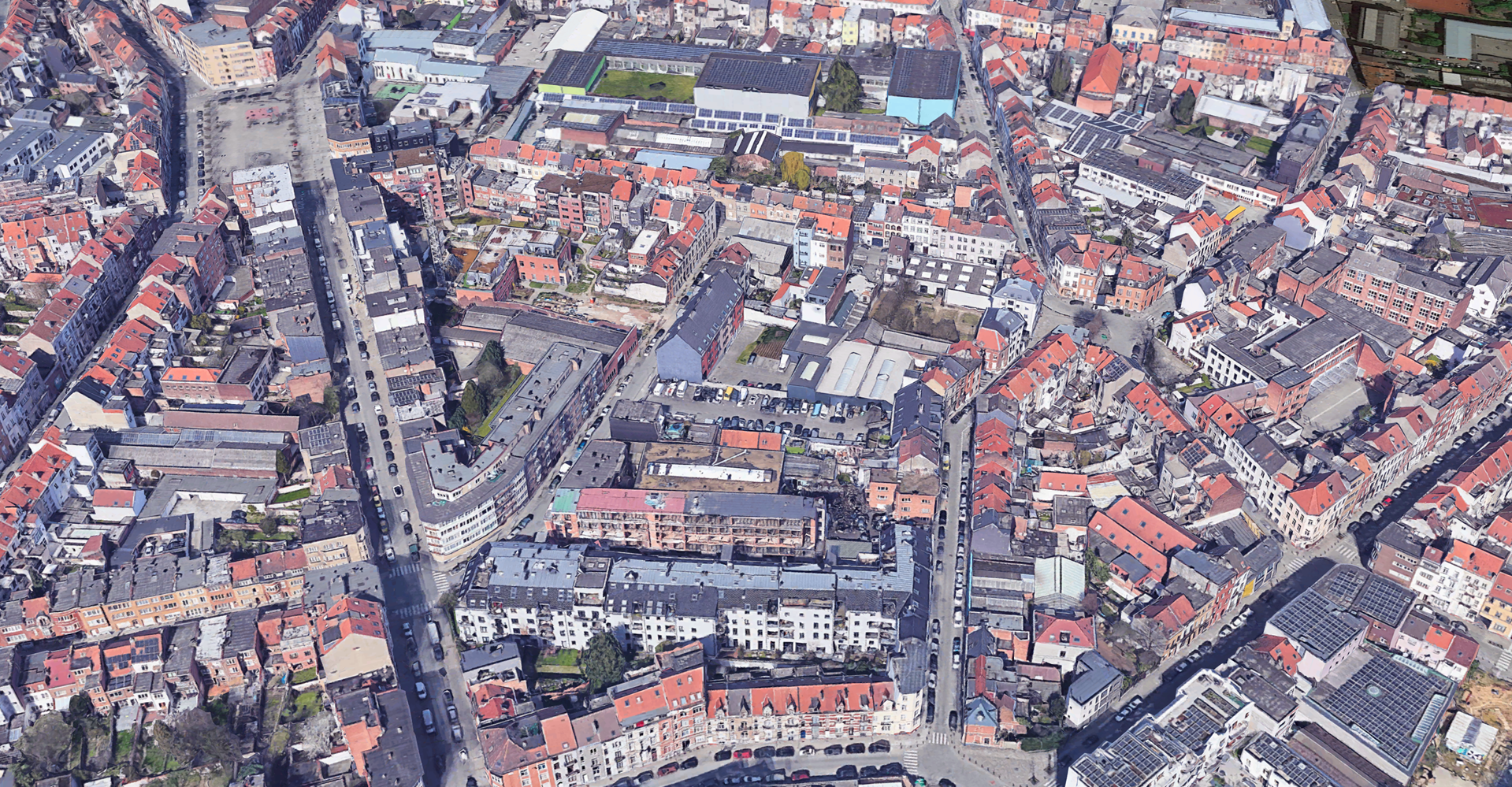 Als je de stad vanuit de lucht bekijkt, zie je dat er zich tussen de straten ‘bouwblokken’ aftekenen: een geheel aan woningen, met langs de achterkant tuinen of koterijen die op elkaar uitkomen. Die binnenkant van een bouwblok noemt men het ‘binnengebied’ (intérieur d’ilôt).