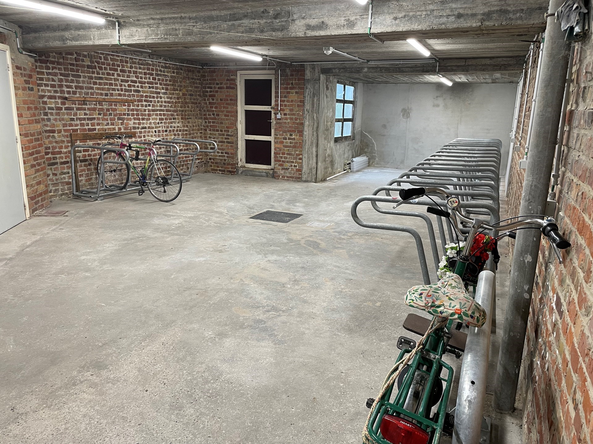De Stad heeft de benedenverdieping omgevormd tot fietsenstalling met plaats voor 20 gewone en buitenmaatse fietsen. De bewoners van het appartementsgebouw kunnen gratis gebruikmaken van de fietsenstalling, de andere fietsparkeerplaatsen zijn voor buurtbewoners. Voor 65 euro per jaar kunnen ze een afgesloten fietsparkeerplaats huren. Ze krijgen dan toegang tot de fietsenstalling met een persoonlijke badge. Er zijn ook stopcontacten om elektrische fietsen op te laden. Zowel voor gewone als buitenmaatse fietsen zijn er nog plaatsen vrij.