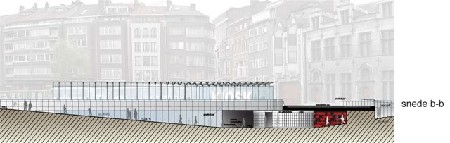 Door de ruime trappen en het gebruik van glaspartijen vormt de ondergrondse fietsenparking