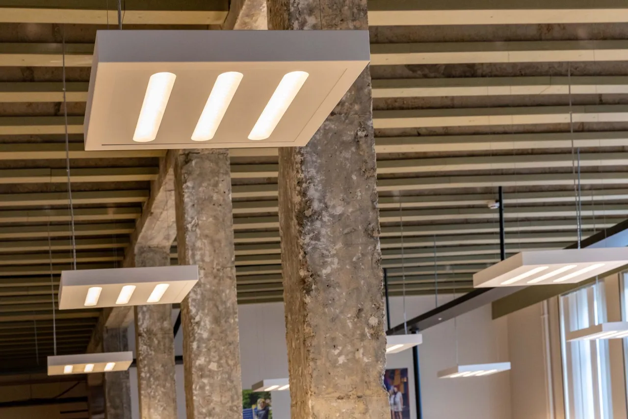 Tenminste, niet in hun bestaande vorm. ETAP bouwde de armaturen, gebruikmakend van kaders waarin ze werden geïntegreerd, immers om naar pendelarmaturen, wat het nieuwe C-LaaS-contract dubbel circulair maakte – bovenop de zekerheid over het hergebruik of de recyclage van de armaturen kwam dus ook het feit dat ze al een eerste leven achter de rug hebben.