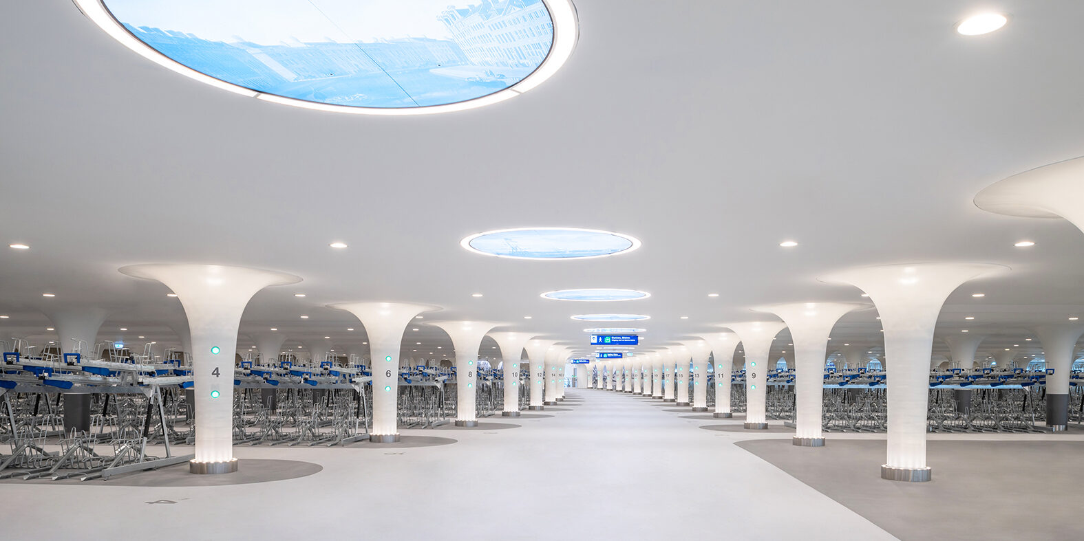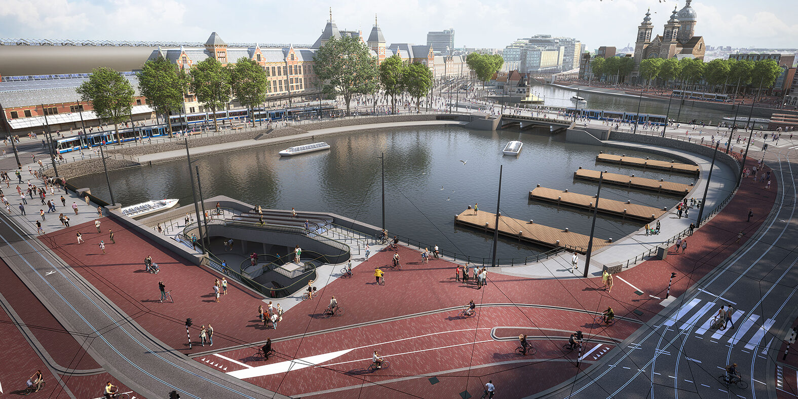 Nederland is een fietsland, daarmee trappen we op zijn minst een open deur in. Amsterdam doet dat statuut alle eer aan met de opening van de grootste fietsenstalling van de stad en de eerste wereldwijd die onder water is gebouwd. De stalling biedt plaats aan 7.000 fietsen. Volgende maand opent nog een tweede onderwatergarage die de capaciteit zal verhogen naar 11.000 fietsen. De fietsparkeergarage maakt deel uit van het project De Entree. Dat omvat onder andere het vernieuwen van het Stationsplein en de bruggen naar het Stationseiland, nieuwe kades en steigers, tramsporen, haltes en grote delen van de Prins Hendrikkade.