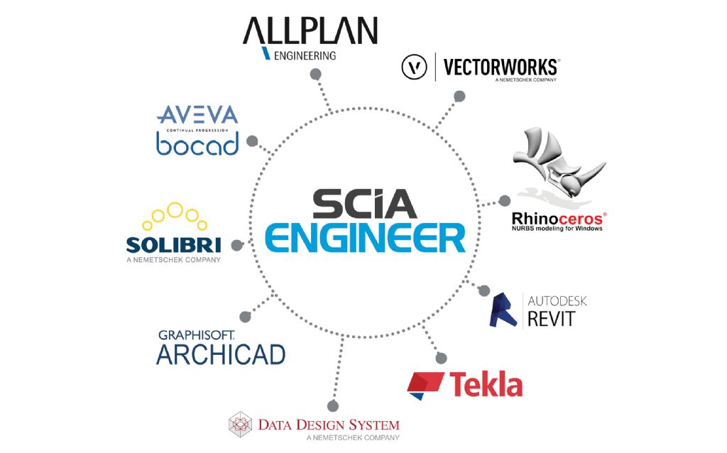 Een ‘gesloten’ software behoort definitief tot het verleden. Tegenwoordig moeten ingenieurs gegevens uitwisselen met andere software via Open BIM. In de praktijk vertaalt dit zich meestal in een communicatie via het neutrale IFC-formaat. SCIA Engineer is de allereerste software met een certificatie voor zowel import als export van deze ISO-standaard. Door integratie van een slimme BIM-toolbox worden constructie-modellen met o.a. Tekla Structures, Revit, Bocad, Rhino … omgevormd tot een analysemodel voor de berekening.