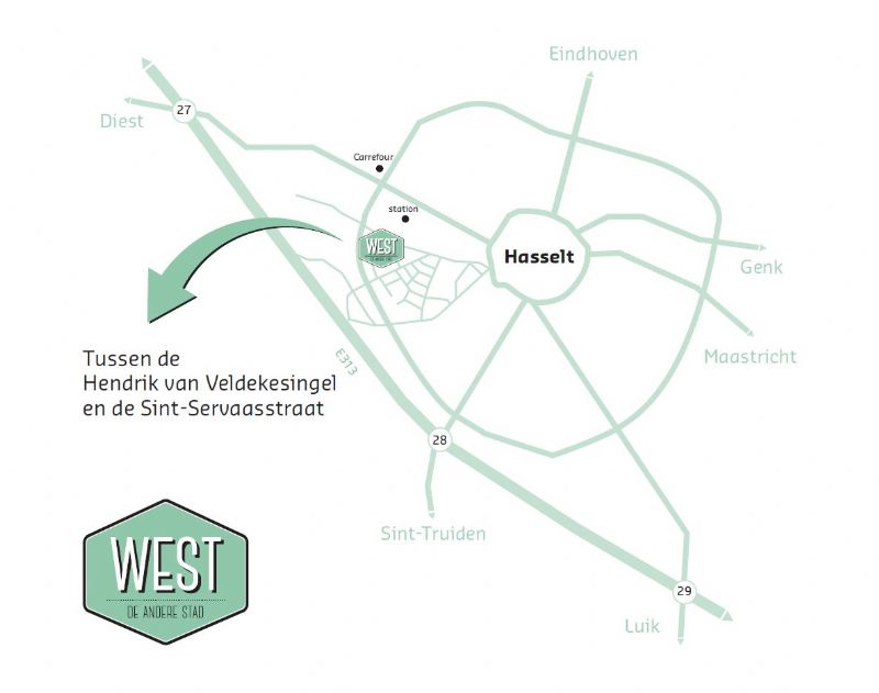 Het totale project WEST - De Andere Stad bestaat uit 125 wooneenheden, met voor elk wat wils. Zo zijn er 2- en 3-slaapkamerappartementen, tuinappartementen en penthouses, met tuin en/of terras. De groene omgeving, de ligging op wandelafstand van het Hasseltse stadscentrum en de nabijheid van het station zijn volgens de ontwikkelaar grote troeven.