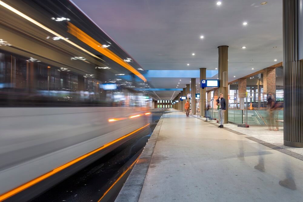 Het mooie ontwerp van Koen van Velsen won 19 mei de prijs voor het Beste Gebouw van 2017. Het station heeft aan twee kanten een indrukwekkende entree en heeft zodoende geen hoofdingang. De benaming station doet overigens geen recht aan het multifunctionele complex. Met een busstation, een parkeergarage op het dak, 9.000 vierkante meter winkels, 20.000 vierkante meter kantoren, 147 woningen, stalling voor 6.000 fietsen en 2 pleinen is het een geheel nieuw stuk stad. De werking van de stadspassage, die het noorden en zuiden van Breda weer met elkaar verbindt, is bovendien al merkbaar: de achterliggende wijk bloeit op. Dat sluit aan bij de ambitie van het project om de omgeving mee omhoog te trekken. Met de grote belangstelling voor de woningen en kantoren in het pand en het opbloeien van de omgeving lijkt die ambitie goed te slagen.