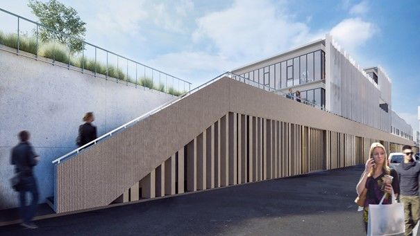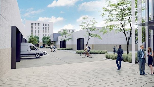 Terwijl alle magazijnen uitgerust worden met koepels en dakramen, worden de noordwestelijke gevels van de werkplaatsen van de incubator ook bekleed met doorschijnend polycarbonaat en volledig beglaasde raampartijen, waardoor de natuurlijke lichtinval gemaximaliseerd wordt. Deze architecturale variatie illustreert het gemengde karakter van de nieuwe functies en creëert een levendig stedelijk landschap dat het project op een eerlijke en innemende manier verbindt met de stedelijke omgeving.