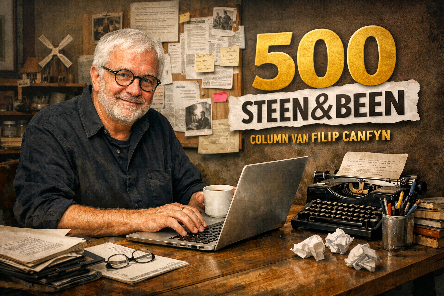 Noot van de redactie: ook onze beeldredacteur had weinig inspiratie. De drie beelden bovenaan dit stuk zijn drie verschillende antwoorden op de vraag: "Hey ChatGPT, in de bijlage vind je de 500e Steen & Been-column van Filip Canfyn. Kun je er een passend beeld bij genereren? Liggend formaat graag."