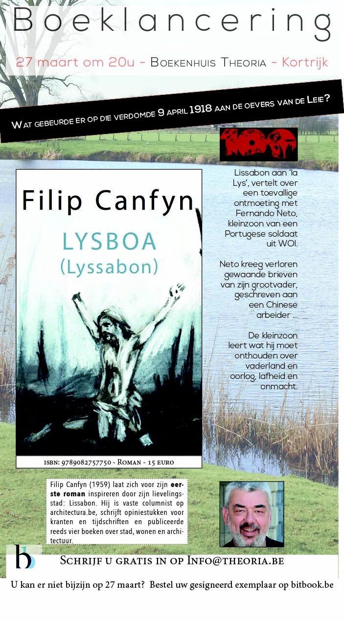 Mijn roman wordt plechtig maar prettig voorgesteld in boekentempel Theoria, in het Kortrijk van de Portugese kasseien, op 27 maart om 20 uur. Mag ik je van harte uitnodigen op deze boeklancering? Ik zou het enorm appreciëren, in naam van ‘Lysboa (Lyssabon)’, je daar te zien.