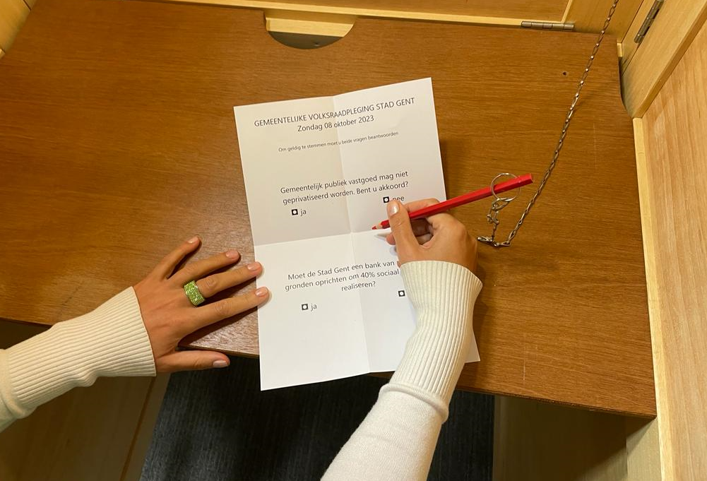De Gentse volksraadpleging rond betaalbaar wonen (8 oktober 2023) krijgt een opkomst van ruim 12% en bijna 80% van de opgedaagde burgers stemt ‘ja’ op beide vragen.