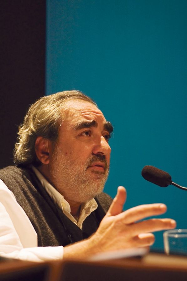 In mijn loge zit André Campos, de fetisjmedewerker van Souto, naast een pas afgestudeerde architect, die zelfs nog geen stageplaats op de kop heeft kunnen tikken. Beiden glunderen als de vedette-tegen-wil-en-dank in alle bescheidenheid maar ook wijsheid op het podium achter een tafeltje kruipt en op een bijna fluistertoon zijn zangerig Frans in de tot de nok gevulde zaal vernevelt. Hij ademt nog zwaarwichtiger sinds hij drie jaar geleden van dag op dag met zijn kettingroken brak.