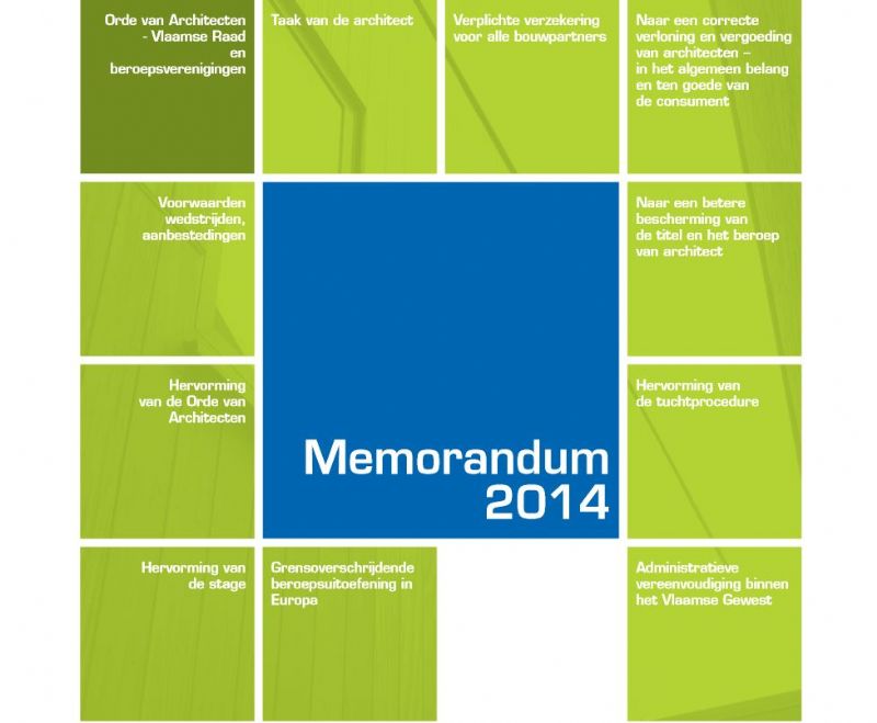 Deze week bespreekt huiscolumnist Filip Canfyn het Memorandum 2014. “De verzamelde Vlaamse en Brusselse architecten hebben zich achter het Memorandum 2014 gezet om bij de vele nieuwe regeringen hun grieven en wensen op de agenda te krijgen. Een nobel initiatief maar ik moet deemoedig bekennen, als architect langs de zijlijn, dat ik een beetje plaatsvervangend beschaamd geworden ben na het lezen van dit zogenaamd werkstuk.”