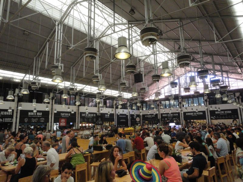 Terug naar Lissabon. Daar hadden ze in betere tijden een grote overdekte versmarkt, de Mercado da Ribeira, die de vergelijking met de illustere Boqueria in Barcelona moeiteloos doorstond. Vandaag zijn de traditionele kraampjes vol vis, vlees en groenten bijna allemaal weggedrukt door een leger designtafels en barstoelen voor toeristen en Antwerpen-Zuid-telgen, die zich luidruchtig bedienen aan ontelbare foodstalletjes zoals in de recente poshy Markthal in Rotterdam en dus veel te dure hamburgers en fusion salads vreten. Hier zegeviert nu de mercantiele Uplace-visie op eetbeleving en niet meer de vitale functie van een stadsmarkt.