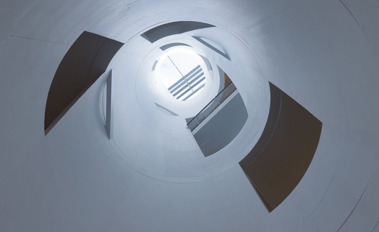 Het zeven verdiepingen-tellende gebouw bevat werkruimtes, ateliers, kantoren, gallerijen en een auditorium. Door grote ramen, gericht naar het noorden, baden de studio's in het licht. Een café op het derde verdieping maakt verbinding met een groen terras, met zicht op het oude gebouw.