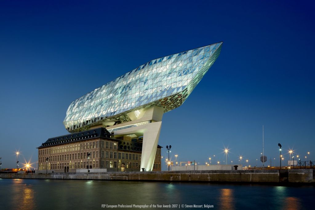 Afgelopen zondag werden de FEP European Professional Photographer of the Year 2017 awards uitgereikt. Steven Massart sleepte een finaleplaats in de wacht met zijn foto van het nieuwe Havenhuis in Antwerpen.