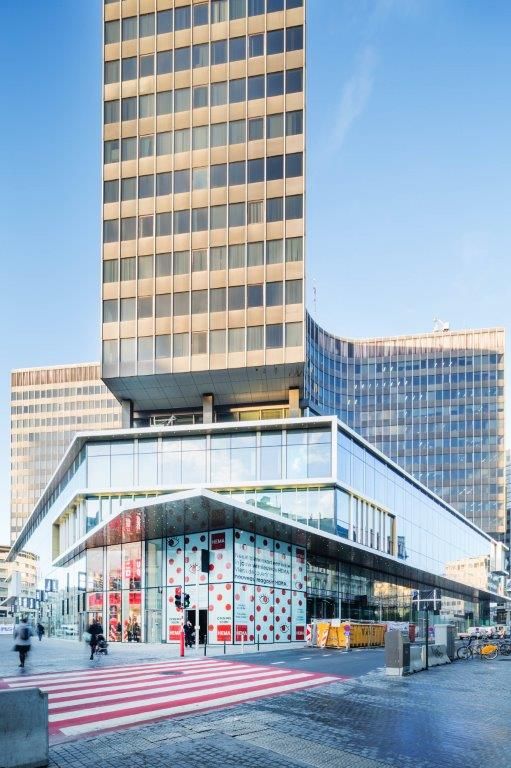 Het karakteristieke silhouet van het Muntcentrum kleurt de Brusselse skyline al sinds 1971. Het iconische kantoorcomplex verrees op de plek van het voormalige postgebouw en herbergt sinds twee jaar een gloednieuw winkelcentrum. The Mint biedt plaats aan twintig textiel-, make-up- en sportwinkels en diverse diensten, die ook vanaf het Muntplein en de Anspachlaan te bereiken zijn en dus veel meer visibiliteit genieten dan hun voorgangers. “Nu ook de omliggende openbare ruimte klaar is, komt het project pas echt tot zijn recht”, aldus Gregoire de Jerphanion, architect en co-founding partner bij DDS+.