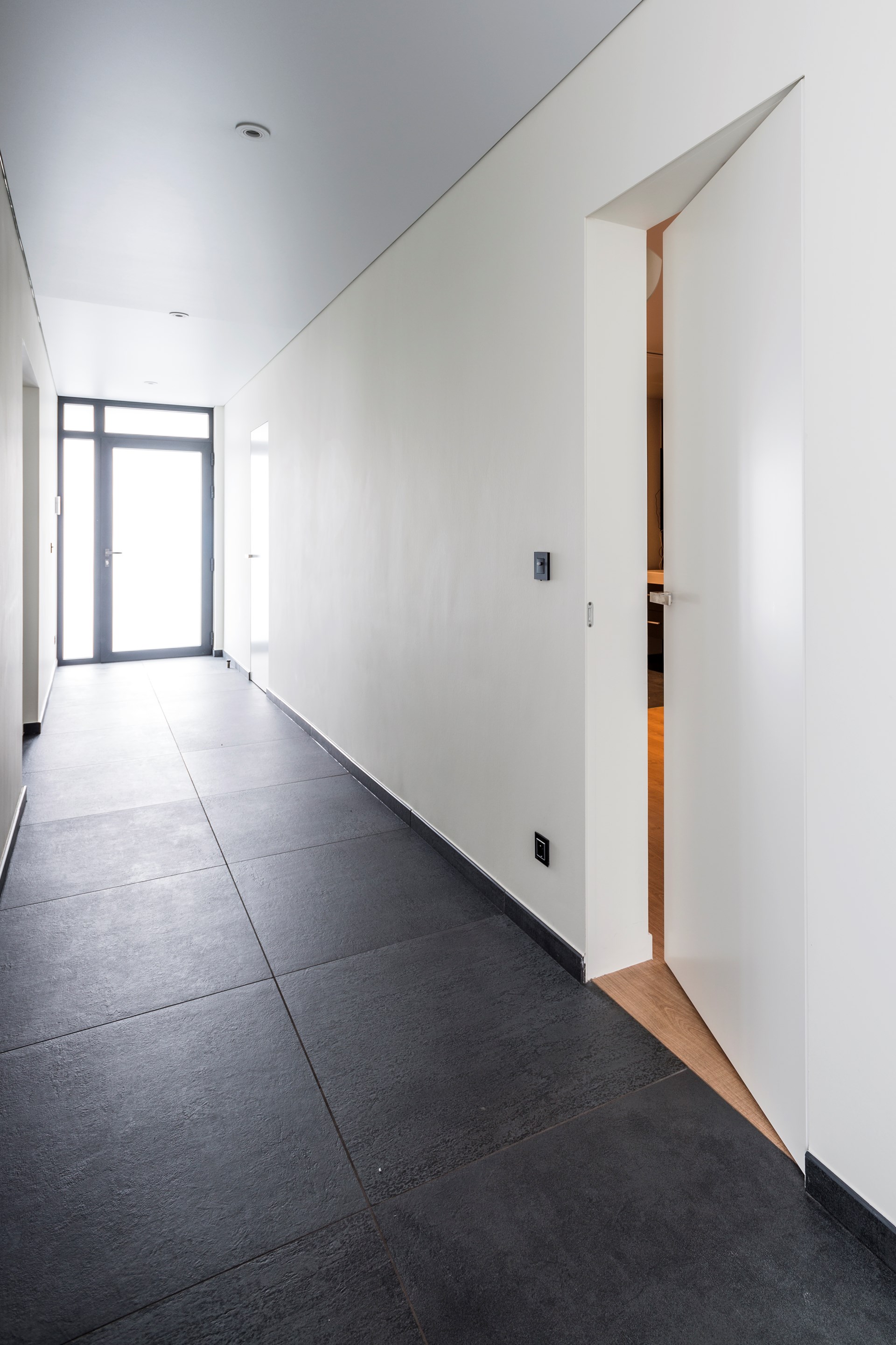 In Adegem was strakke vormgeving de norm voor het interieur van deze nieuwbouw ééngezinswoning met kantoorruimte. De argenta invisidoor DL en SDX-binnendeursystemen passen er dan ook perfect in het plaatje. Vooral de kamerhoge SDX-schuifdeuren springen in het oog … of net niet.