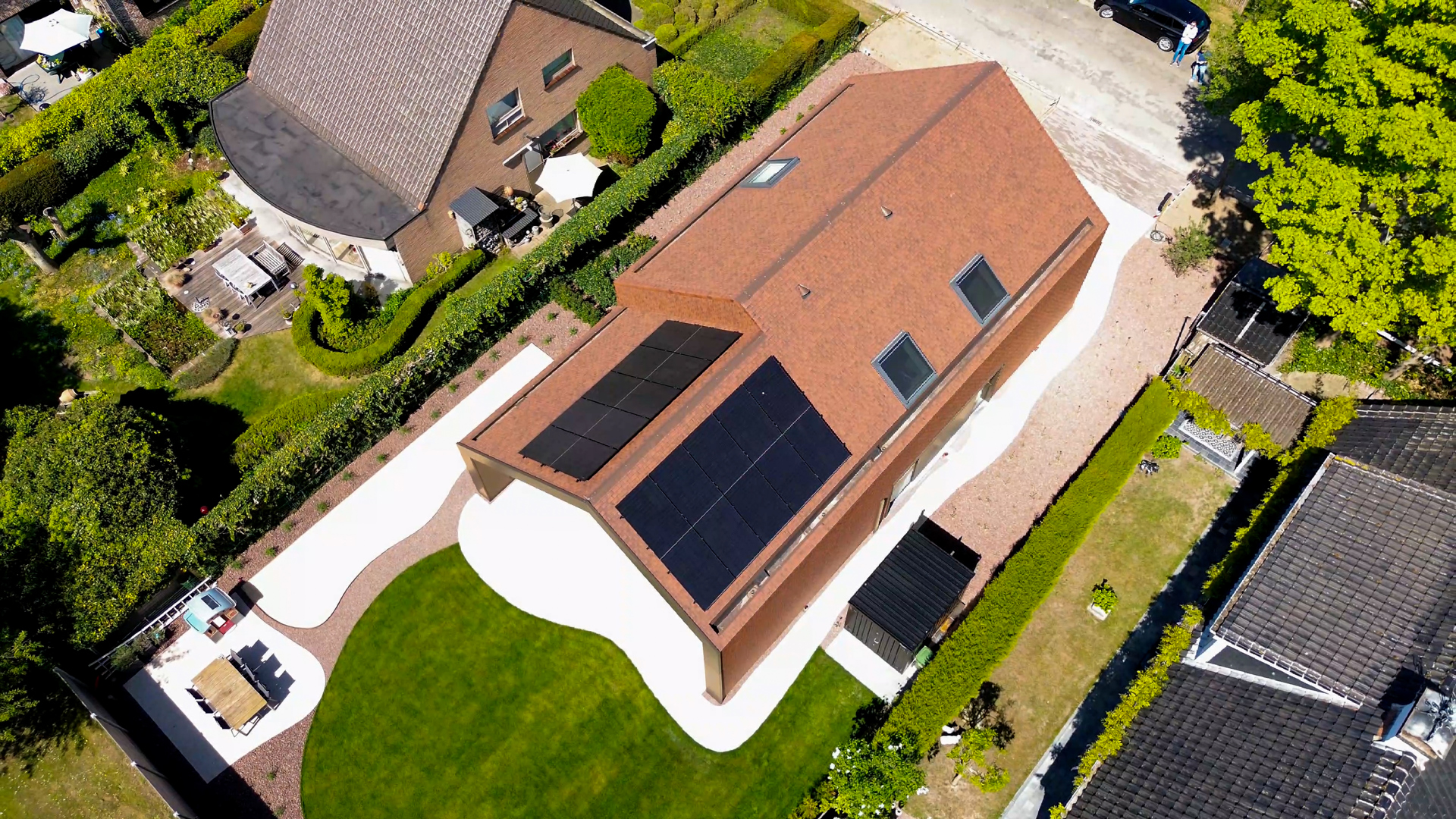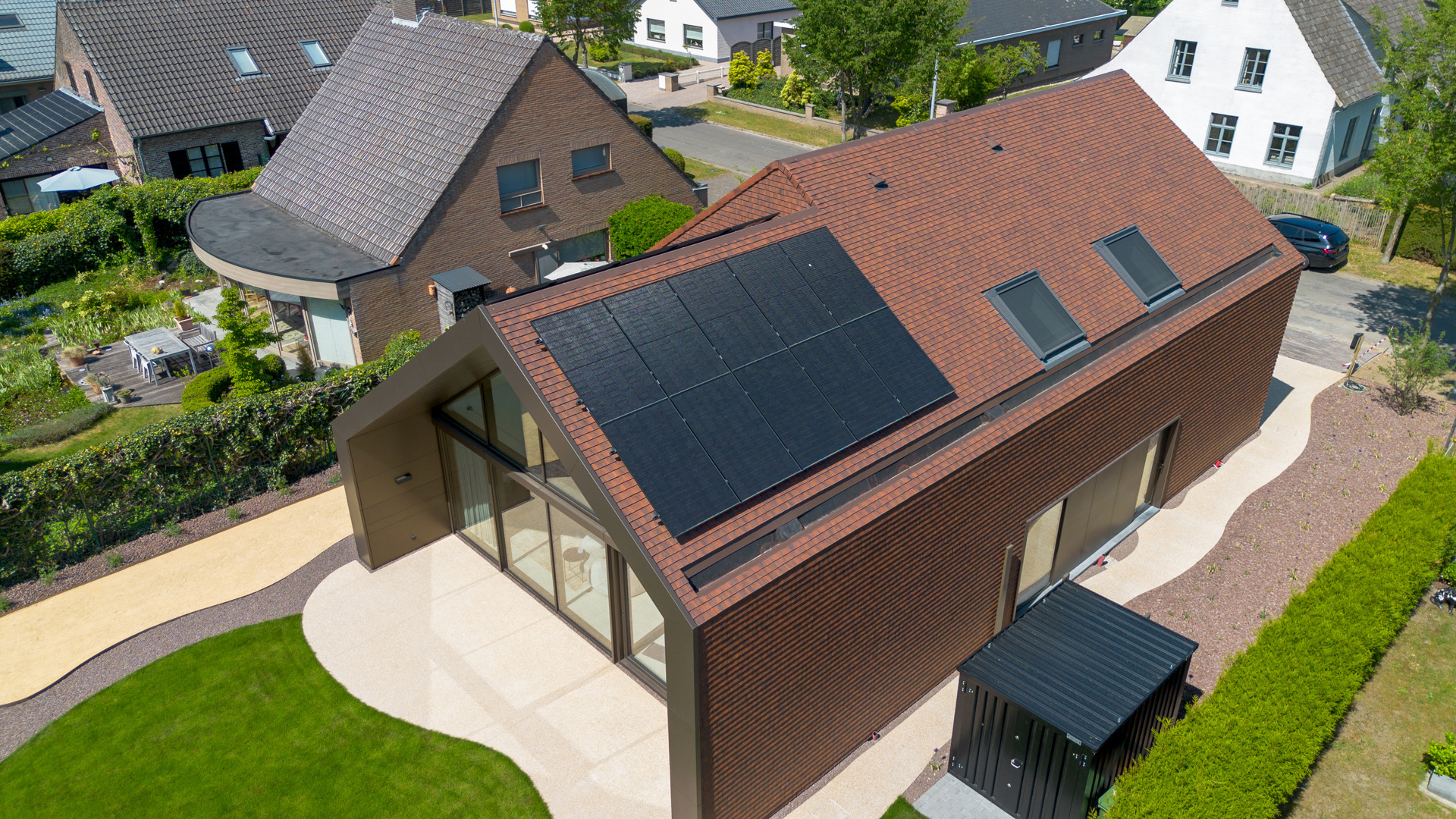 “Voor de dakwerker was het de eerste keer dat hij met dit type pan werkte,” zegt Niene. “Toch verliep de plaatsing probleemloos dankzij de slimme vormgeving met ingewerkte neuzen. Het resultaat is precies wat we voor ogen hadden: een woning die strak, uniek en tijdloos oogt.”
