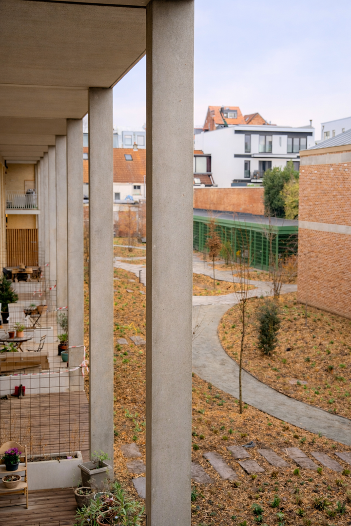 De landschappelijke inrichting van de binnenruimte is een essentieel onderdeel van het ontwerp. De Wastuin is geen restzone, maar een volwaardige stedelijke tuin die gedeeld wordt door alle bewoners van de site. Met een sterke inzet op biodiversiteit en stadsnatuur ontstaat een rustige, helende omgeving in een dense stedelijke context. Die open ruimte versterkt niet alleen de woonkwaliteit, maar fungeert ook als gemeenschappelijke drager voor de uiteenlopende woonvormen binnen het project.