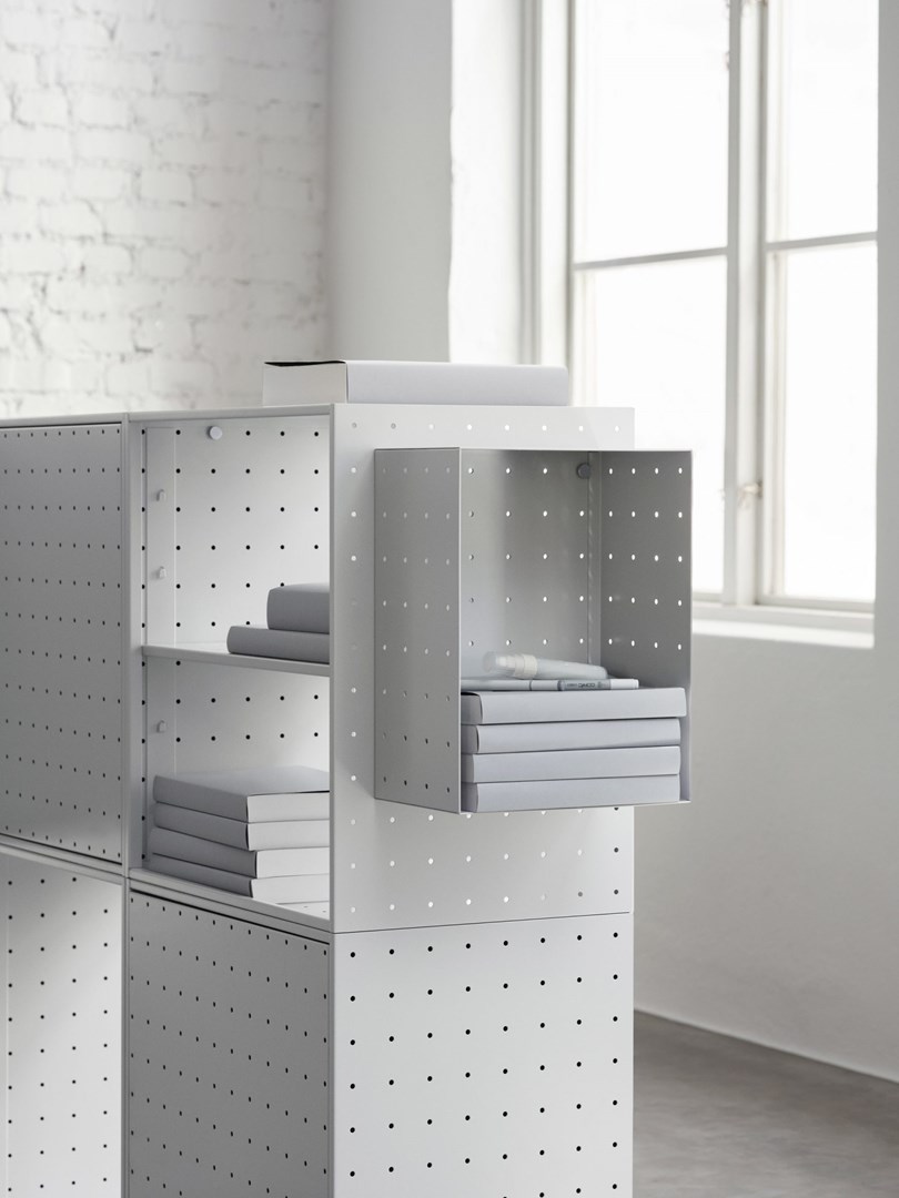 Het Zweedse merk String Furniture heeft in samenwerking met de ontwerpstudio Form Us With Love het modulaire opbergsysteem Center Center ontwikkeld. Dit systeem, vervaardigd uit geperforeerd staal, is flexibel inzetbaar en kan eenvoudig worden aangepast aan diverse werkplekken en openbare ruimtes.