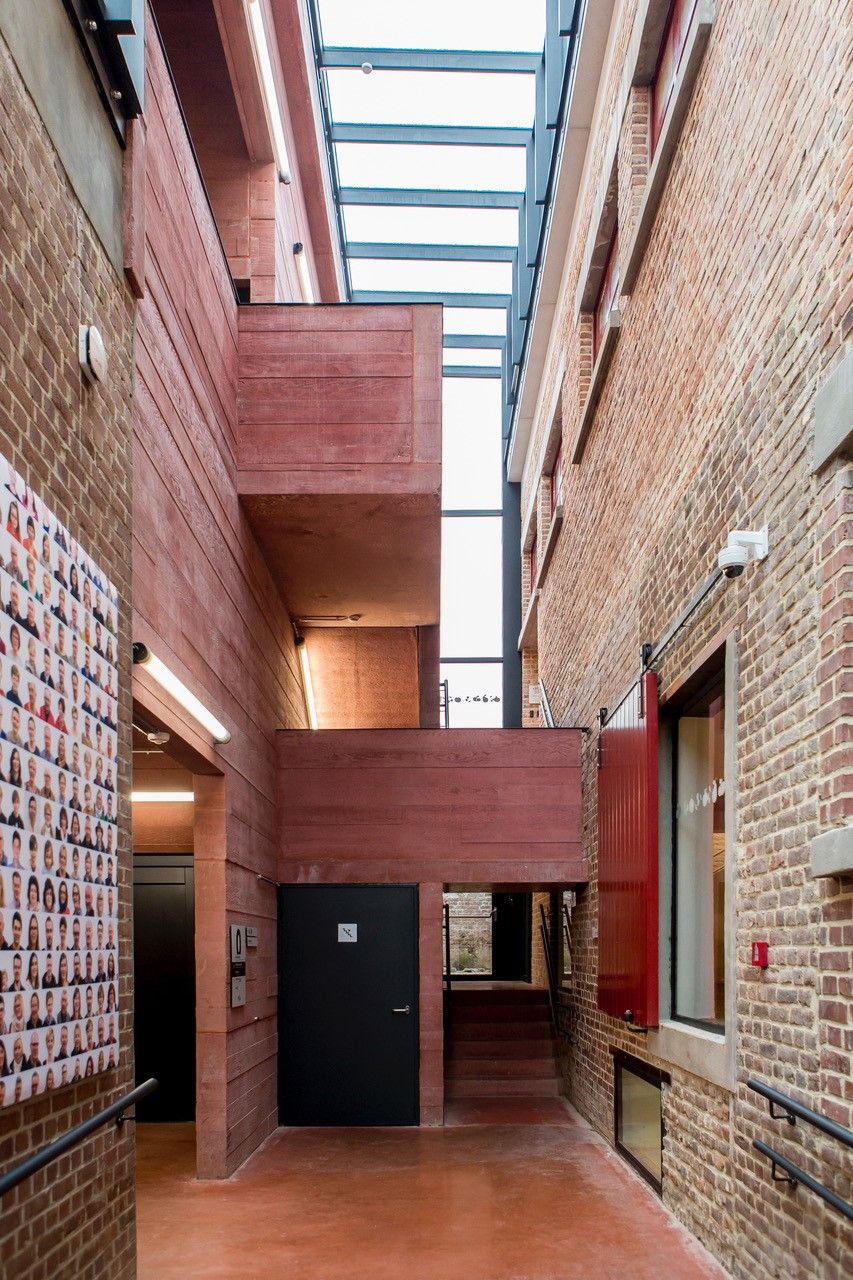 Steeg tussen de historische kern (inkomvolume) en het hoofdgebouw