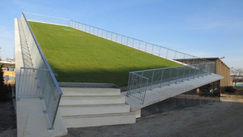 Naast de eigenlijke gebouwstructuur vormde vooral de aanleg van het steil hellende groendak een grote uitdaging, zeker in combinatie met het specifieke grondplan van het gebouw – het gros van de buitenwanden is namelijk schuin gepositioneerd. “Alle aansluitingen en details waren anders en moesten vooraf dan ook zeer goed bestudeerd worden. Dit was vooral het geval bij de overgang tussen de horizontale verdiepingsvloeren en de hellende dakstructuur en de overgang tussen de structurele beglazing en de dakrandprofielen in wit architectonisch beton. Door gebruik te maken van een 3D-model hebben we onaangename verrassingen gelukkig wel kunnen uitsluiten. Een ander complex gegeven was het aanbrengen van de dakbegroeiing. De helling van het dak is 37 %: te steil om te kunnen terugvallen op de normen die het WTCB heeft geformuleerd. Het was dan ook niet eenvoudig om de stabiliteit en het vochtgehalte van het substraat op peil te houden. Gelukkig hadden we ons op elke stap van het bouwproces uitstekend voorbereid en konden we het Corda1-gebouw zonder al te veel grote problemen realiseren. Projecten als deze, waarin we voor onze partners echt een meerwaarde kunnen betekenen, zijn een kolfje naar ons hand.”