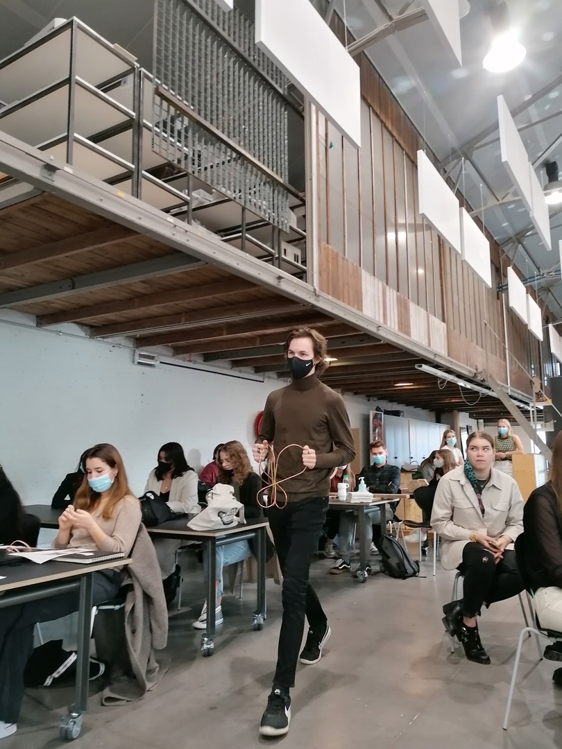 - Yasmine El Jilali: de ‘CircuKrans’ bestaat uit een koperen buisje en gedroogde bloemen. Koper is een materiaal dat verschillende keren kan worden hergebruikt en de vorm van het buisje refereert aan het circulaire model. Met de gedroogde bloemen was CircuKrans van alle awards die Neven en ondergetekende te zien kregen de enige met een fysieke en niet verbeeldende link naar de natuur. “Omdat circulair bouwen draait om het verkleinen van de negatieve impact op de natuur”, legde El Jilali uit. Van deze award zullen twaalf exemplaren worden gemaakt. Elke winnaar mag de award dus houden in zijn geheel. Spijtig detail: het prototype dat El Jilali ontwierp werd enkele dagen voordat ze hem moest voorstellen ontvreemd uit het lokaal waar ze hem had achtergelaten en ze kon hem dus enkel op papier presenteren;