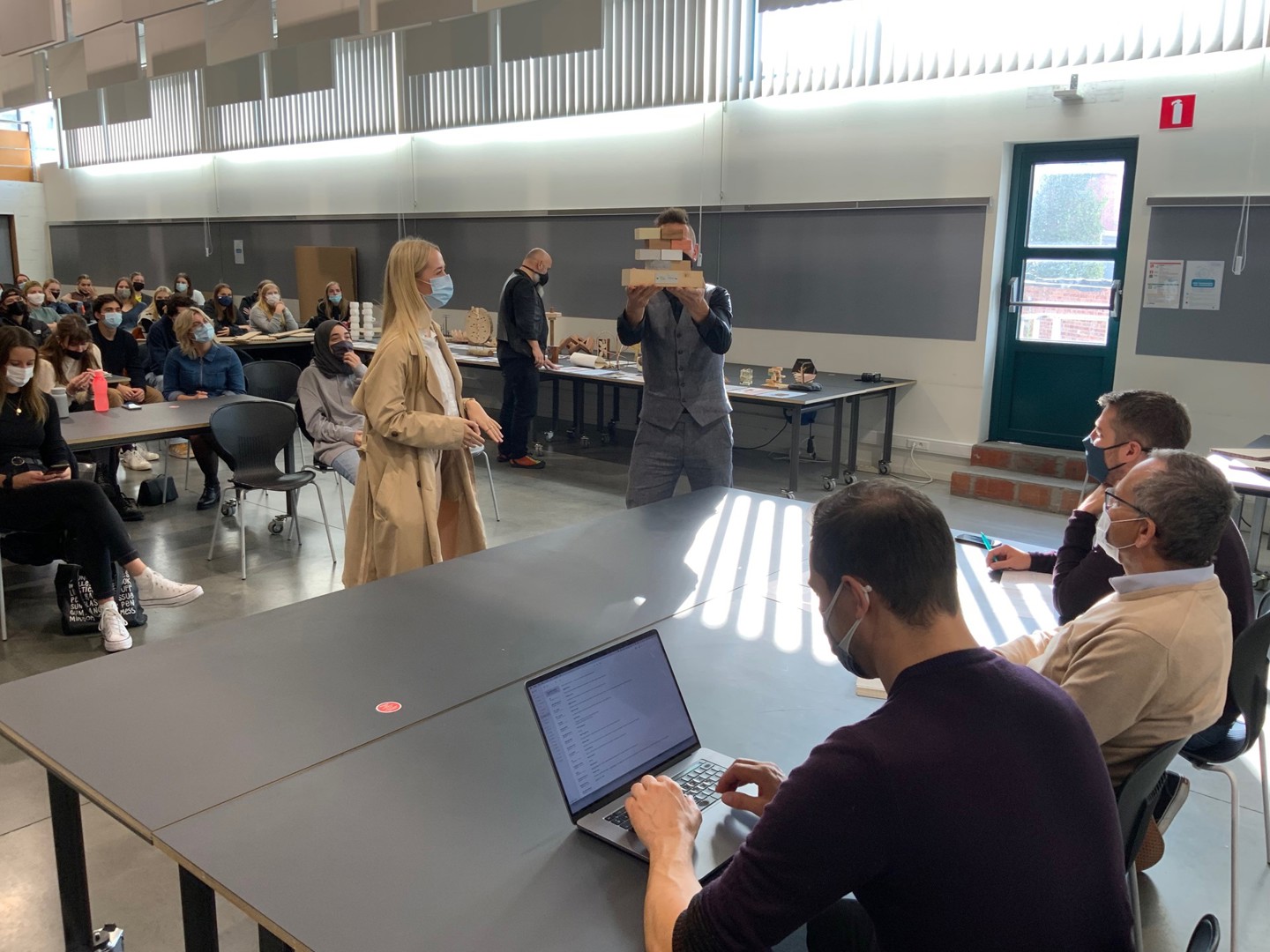 - Ilias Van Hoof: ook deze naamloze award werd op papier voorgesteld. Het ontwerp stond immers nog bij Van Hoof thuis en die kon zelf niet aanwezig zijn omdat hij genietend van een topsportstatuut aan het snowboarden was in het buitenland. De award bestaat uit staal – een circulair materiaal in de zin van letterlijke duurzaamheid; staal gaat enorm lang mee – en hout: twaalf stalen plaatjes gemaakt uit overschotten uit het werkhuis van de hogeschool zijn in een sokkel geschoven. Elke winnaar kan zijn gepersonaliseerde plaatje er dus gemakkelijk en zonder hulpmiddelen uit halen om het voor eeuwig bij te houden. Hij krijgt er ook een houten blokje bij om het plaatje in te plaatsen. Elk stalen plaatje heeft een cirkelvormige opening die verwijst naar circulariteit.