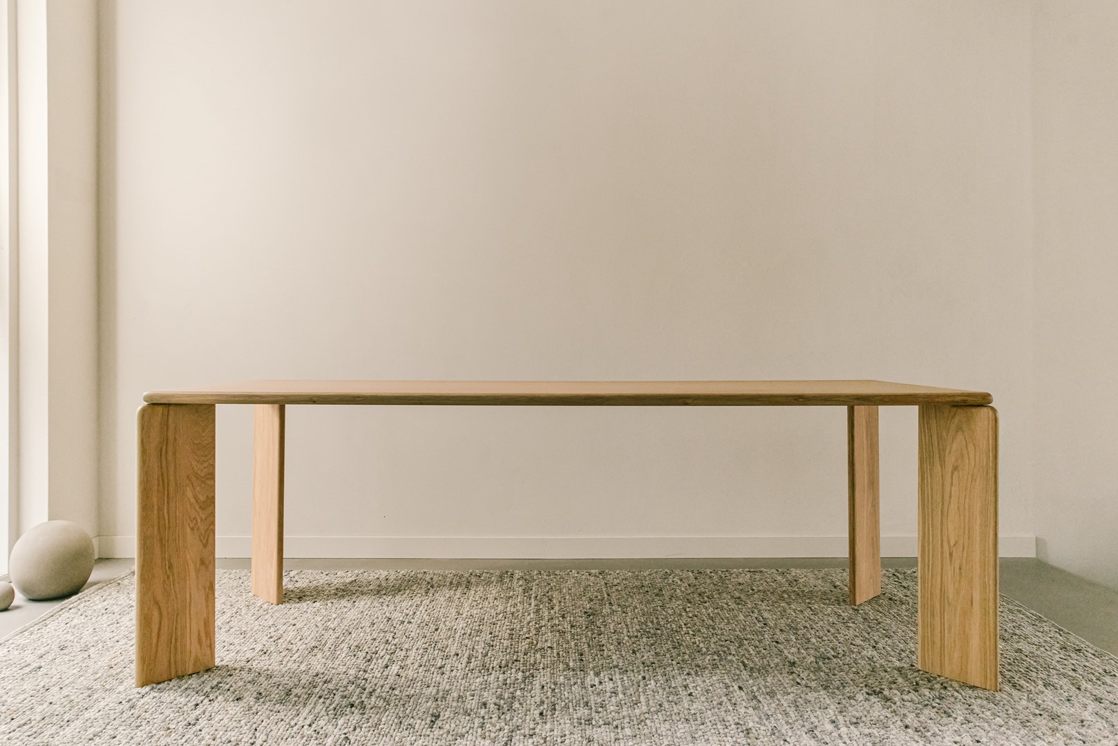 De Soft eettafel is ontworpen om met zoveel mogelijk aan te schuiven. Door slimme posities van de poten en zachte afgeronde hoeken kun je extra veel personen kwijt. De tafel is beschikbaar in verschillende eikenhouten afwerkingen en in drie tijdloze, getemperde kleuren: kobaltblauw, roombotergeel en olijfgroen. Deze kleuren zijn zorgvuldig op elkaar afgestemd, waardoor ze moeiteloos te combineren zijn. De Soft eettafel is vervaardigd uit massief en gecertificeerd eikenhout, waardoor het een tijdloos meubel is dat generaties lang meegaat.