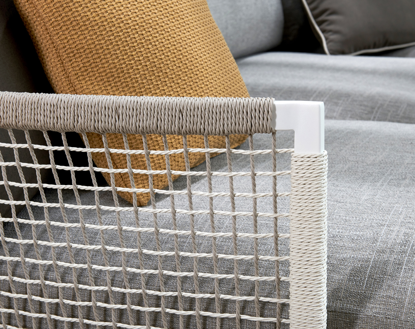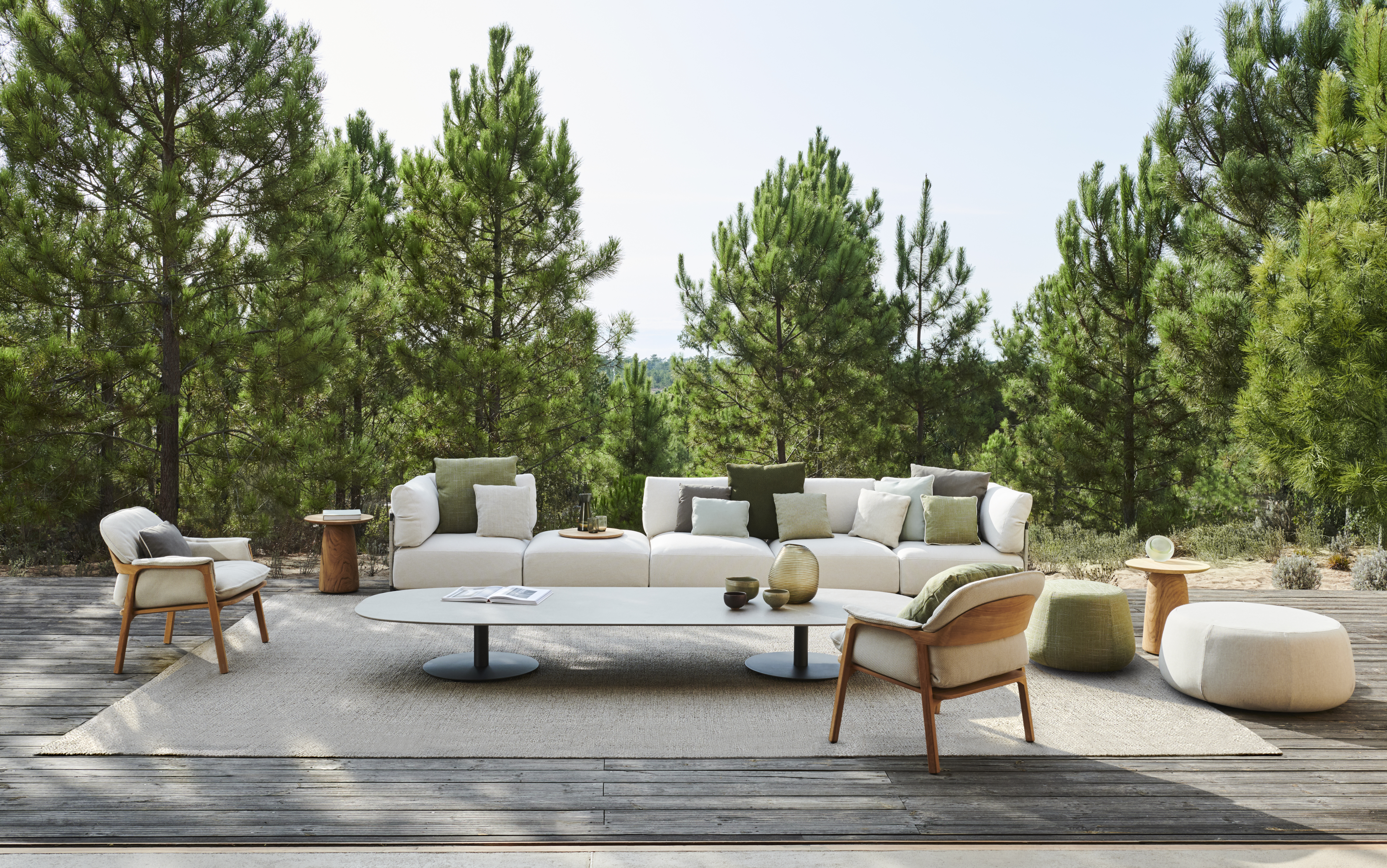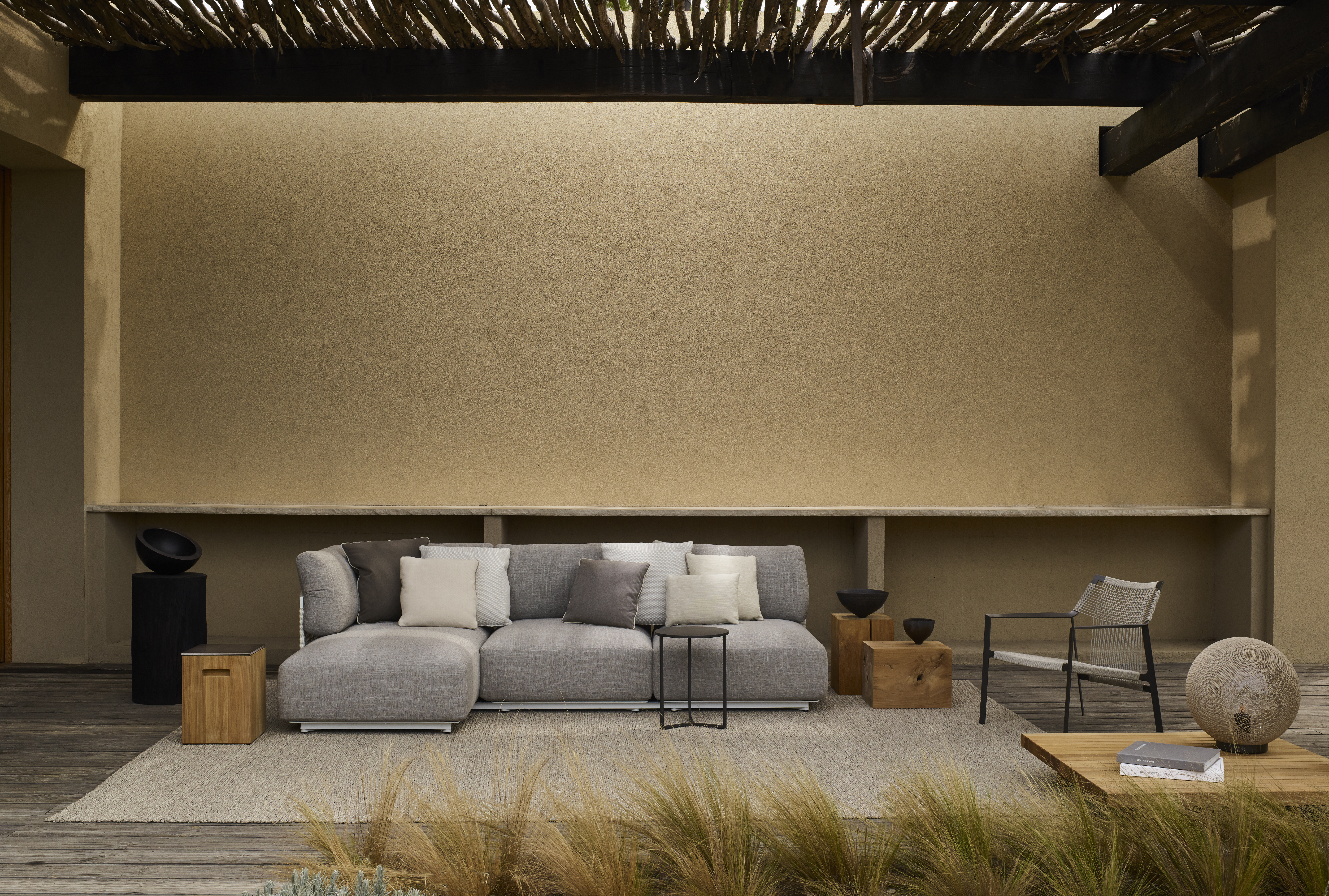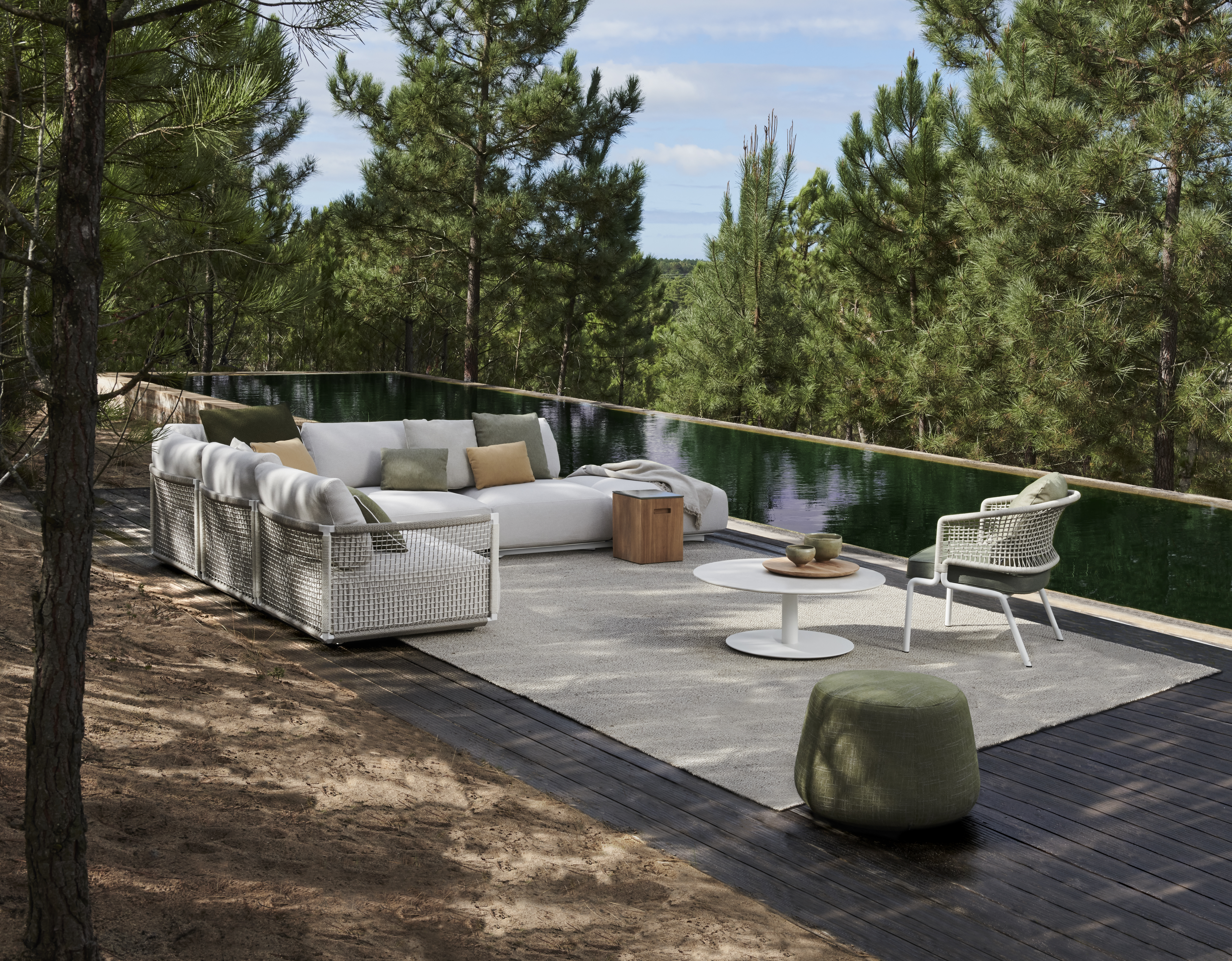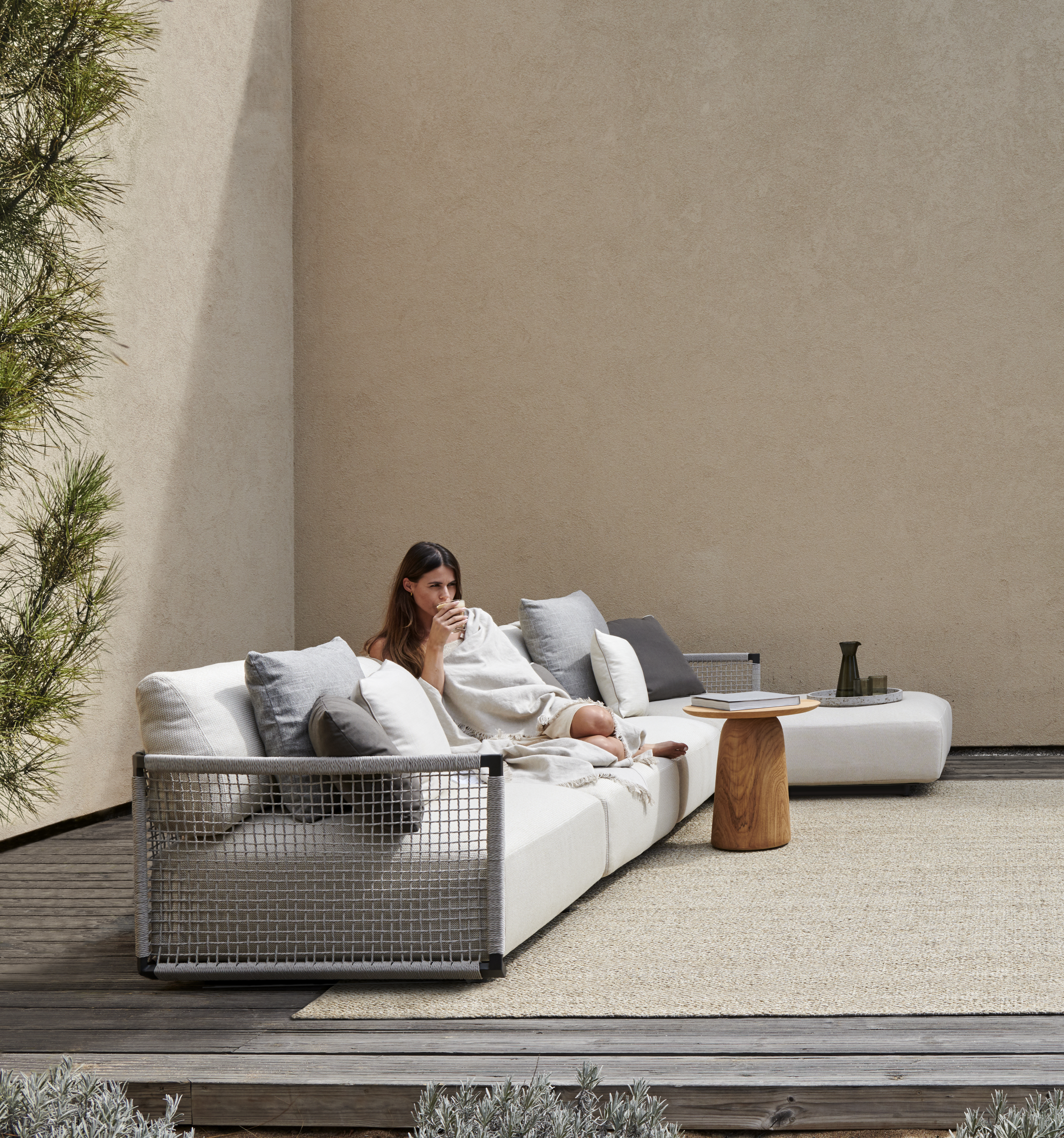 Nodi Sofa is flexibel en modulair, zodat jouw zithoek op maat kan worden ingericht. Het ontwerp bestaat uit een poef, een middenstuk en een hoekmodule in verschillende dieptes. Zo kies jij de combinatie die het beste aansluit bij je outdoor ruimte. Hou je meer van een kleine intieme setting, of gaat je voorkeur uit naar een grote hoeksetting: de mogelijkheden zijn eindeloos.