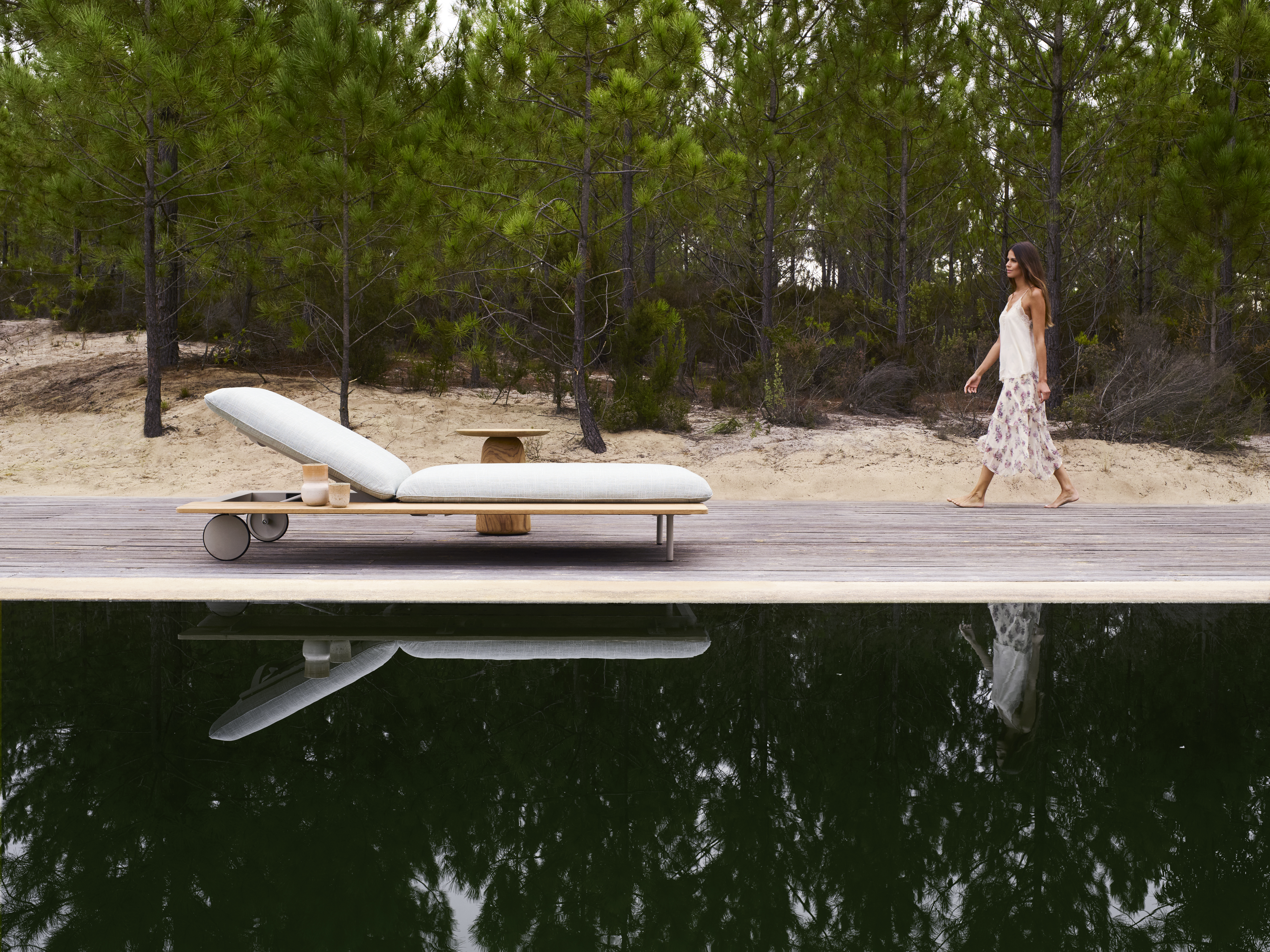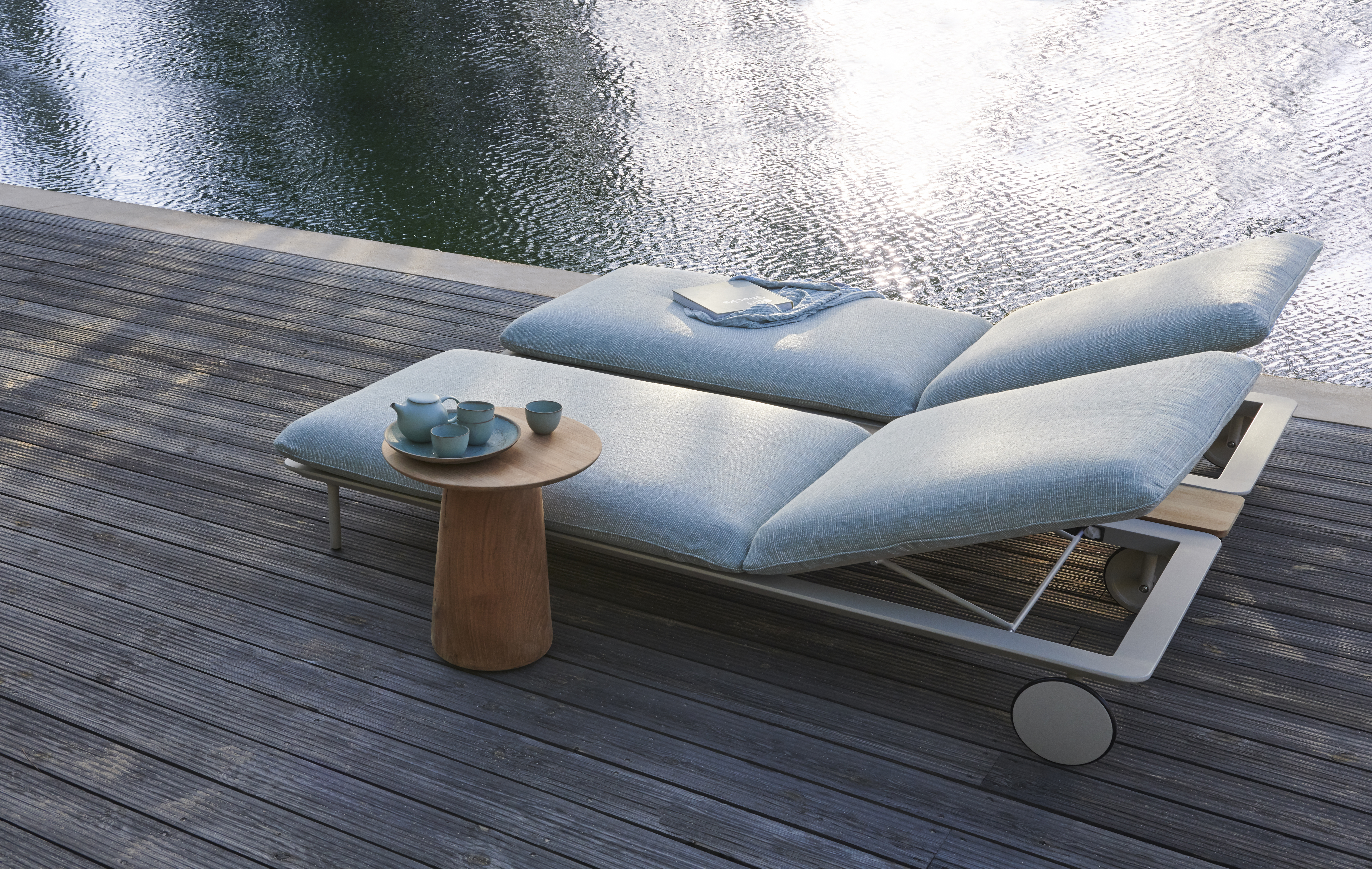 De Senja loungers, ontworpen door Studio Segers, zijn het perfecte meubilair om tot rust te komen en zorgeloos te genieten. Het comfort verschuilt zich in de royale en volumineuze kussens. Zak weg en laat de drukte van de dag van je afglijden. Door middel van een optionele teak tafel die de volledige lengte van de Senja lounger volgt, heb je de nodige spullen binnen handbereik. Zo hoef je de hele dag je ligbed niet meer uit. Naast de heerlijk zachte en weerbestendige kussenvulling, bestaat het Senja ligbed uit een gepoedercoat aluminium frame. Zo is deze lounger minimaal van ontwerp en duurzaam van uitvoering.