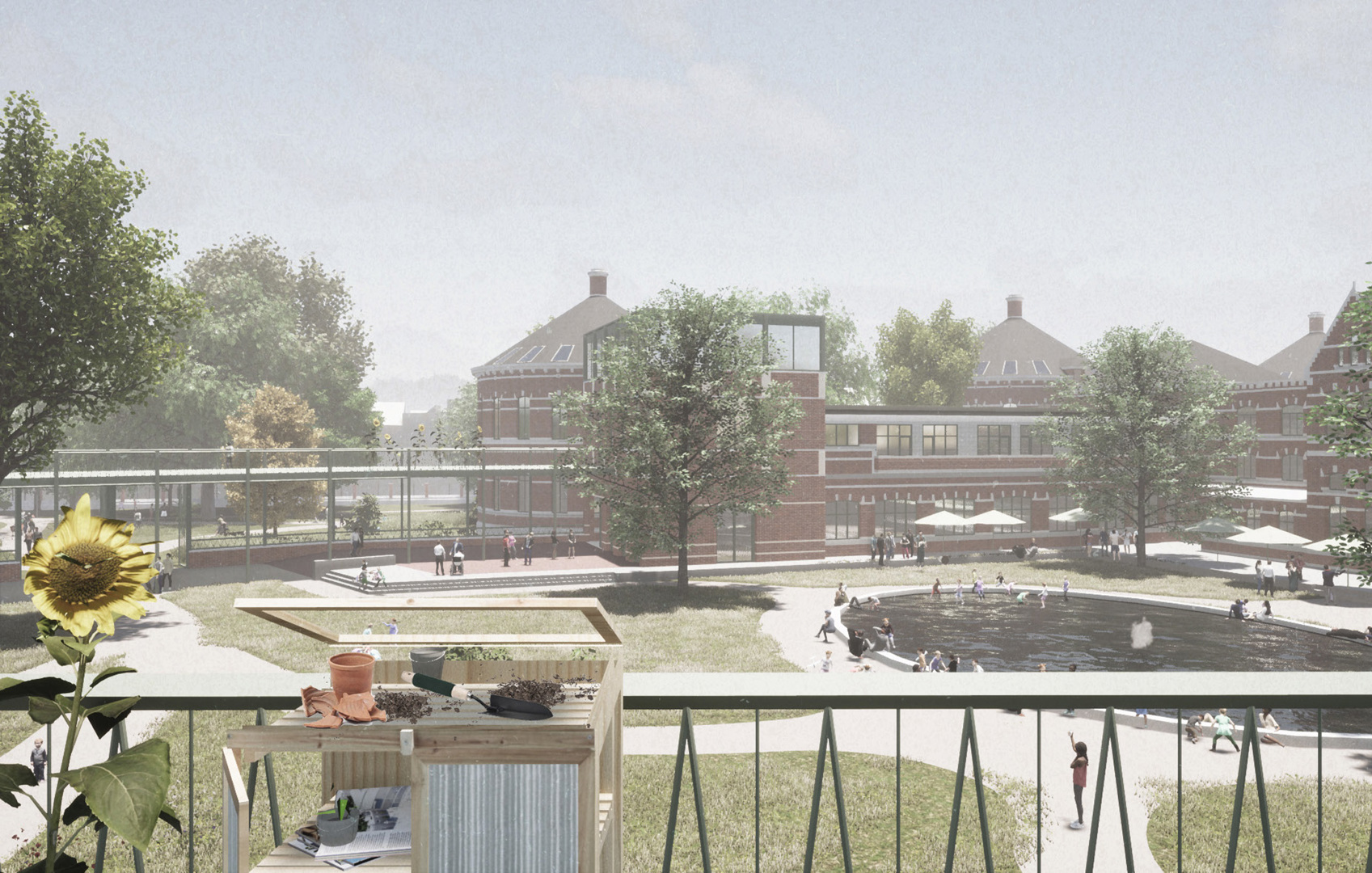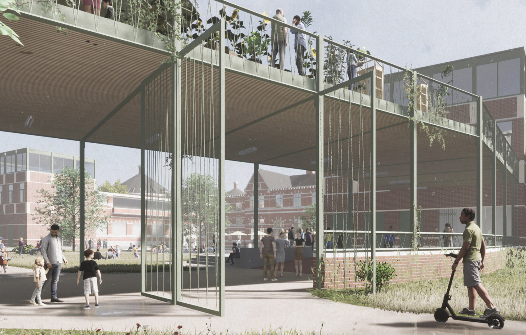 Architecturaal ontstaat daarbij een zorgvuldig afgestemde dialoog tussen oud en nieuw. Interventies zoals de rue extérieure, verbindende volumes en strategisch geplaatste parkstructuren zijn allemaal ontworpen om de historische figuur te ondersteunen en te versterken. Zo wordt het erfgoed geen statisch reliek, maar een actieve drager van het nieuwe stedelijke geheel. Het paviljoenconcept van Baeckelmans wordt opnieuw leesbaar en vormt tegelijk een robuuste basis waarop hedendaagse en toekomstige functies flexibel kunnen aansluiten.