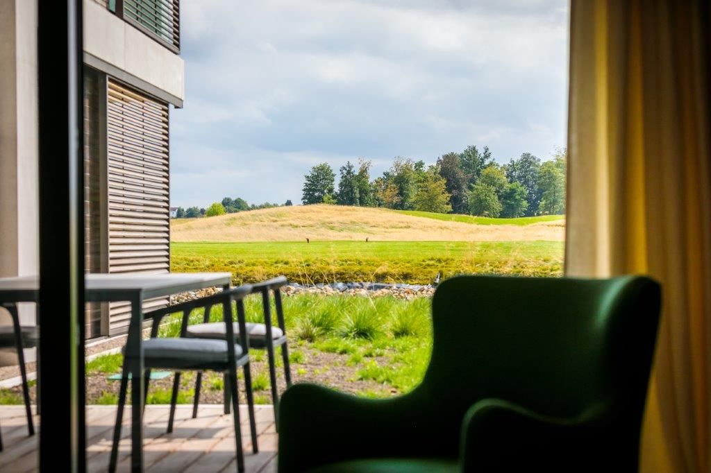 De architectuur en de lay-out van de Sterea-gebouwen zijn volledig geënt op het groene kader waarin ze zich bevinden. Zowel de collectieve wooneenheden als de urban villa’s zijn optimaal geïntegreerd in het natuurrijke binnengebied. “Dit is onder meer te danken aan onze intensieve samenwerking met landschapsarchitect Bas Smets, waarbij we onderzocht hebben hoe we alle gebouwen konden onderbrengen in groene ‘kamers’. Dit om een harmonische overgang naar het overweldigende golflandschap te creëren, waarvoor we dan weer konden rekenen op de expertise van de gerenommeerde golfbaanarchitect Bruno Steensels. Hij spitste zich minutieus toe op de vormgeving en dimensionering van het terrein, waardoor er unieke perspectieven en hoogteverschillen ontstonden die hun stempel drukken op de ruimtelijke beleving. De 6,5 kilometer lange golfcourse is al twee jaar open en kan zowel nationale als internationale liefhebbers bekoren. Het hotel zal dan weer een belangrijk oriëntatiepunt worden voor de buitenwereld en zal in dat opzicht een waardevolle bijdrage leveren aan de ontsluiting van de site. Het is eigen aan ons bureau om naar een stedenbouwkundig-morfologische samenhang te streven, met de bebouwing als stedelijk artefact. Dat is ook in dit geval uitstekend gelukt.”
