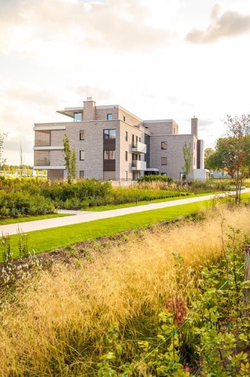 Sterea is een project van lange adem. De werken zijn gestart in 2015 en zouden tegen 2025 volledig klaar moeten zijn. Momenteel is ongeveer de helft van het project uitgevoerd. Zo zijn er al heel wat woningen gerealiseerd, waaronder de drie urban villa’s die Execon voor zijn rekening nam. “Samen bieden ze plaats aan 27 appartementen”, zegt projectleider Bart Das. “Twee van de drie blokken zijn met elkaar verbonden via een gezamenlijke ondergrondse parkeergarage. De gevels zijn bekleed met grijs-beige genuanceerde baksteen, die in combinatie met de uitpandige betonnen terrassen, het donkere schrijnwerk van de grote raampartijen en het omliggende groen een serene, maar tegelijk ook stijlvolle uitstraling creëren. Grote technische uitdagingen had de realisatie van deze appartementsblokken niet in petto, al lag de afwerkingsgraad wel zeer hoog. Dat vormde gezien onze ervaring ter zake echter geen probleem. We zijn fier dat we een van de eerste belangrijke mijlpalen in dit grootschalige prestigeproject tot een goed einde hebben kunnen brengen. De urban villa’s stralen finesse uit, net als de andere gebouwen op de site.”