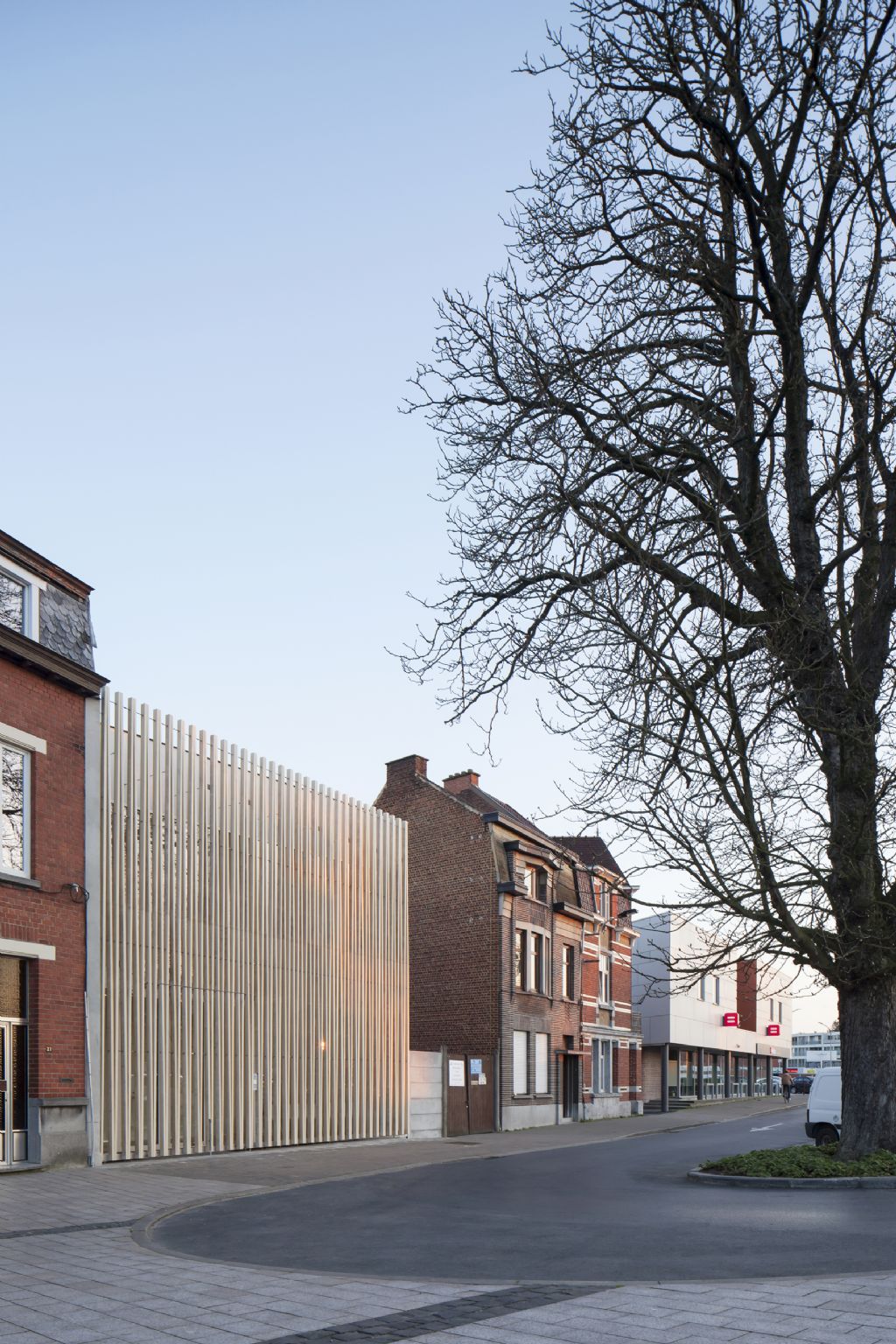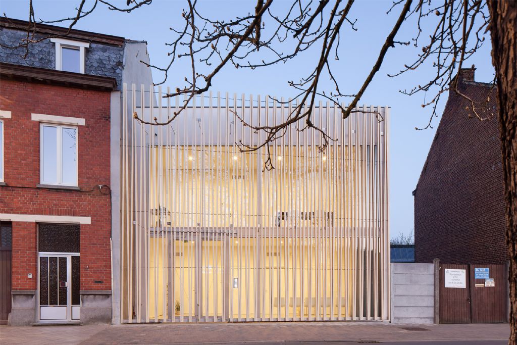 Op het Aimé Delhayeplein in Ronse verrees een medisch prikcentrum dat opvalt tussen de meer traditionele woningen die de buurt rijk is. Daar is vooral de houten structuur aan de voorkant verantwoordelijk voor, die het gebouw tot een architecturale parel maakt. Het ontwerp is van de hand van Delmulle Delmulle uit Petegem-aan-de-Schelde dat voor de nodige studies een beroep deed op Ingenieursadvies De Clercq.
