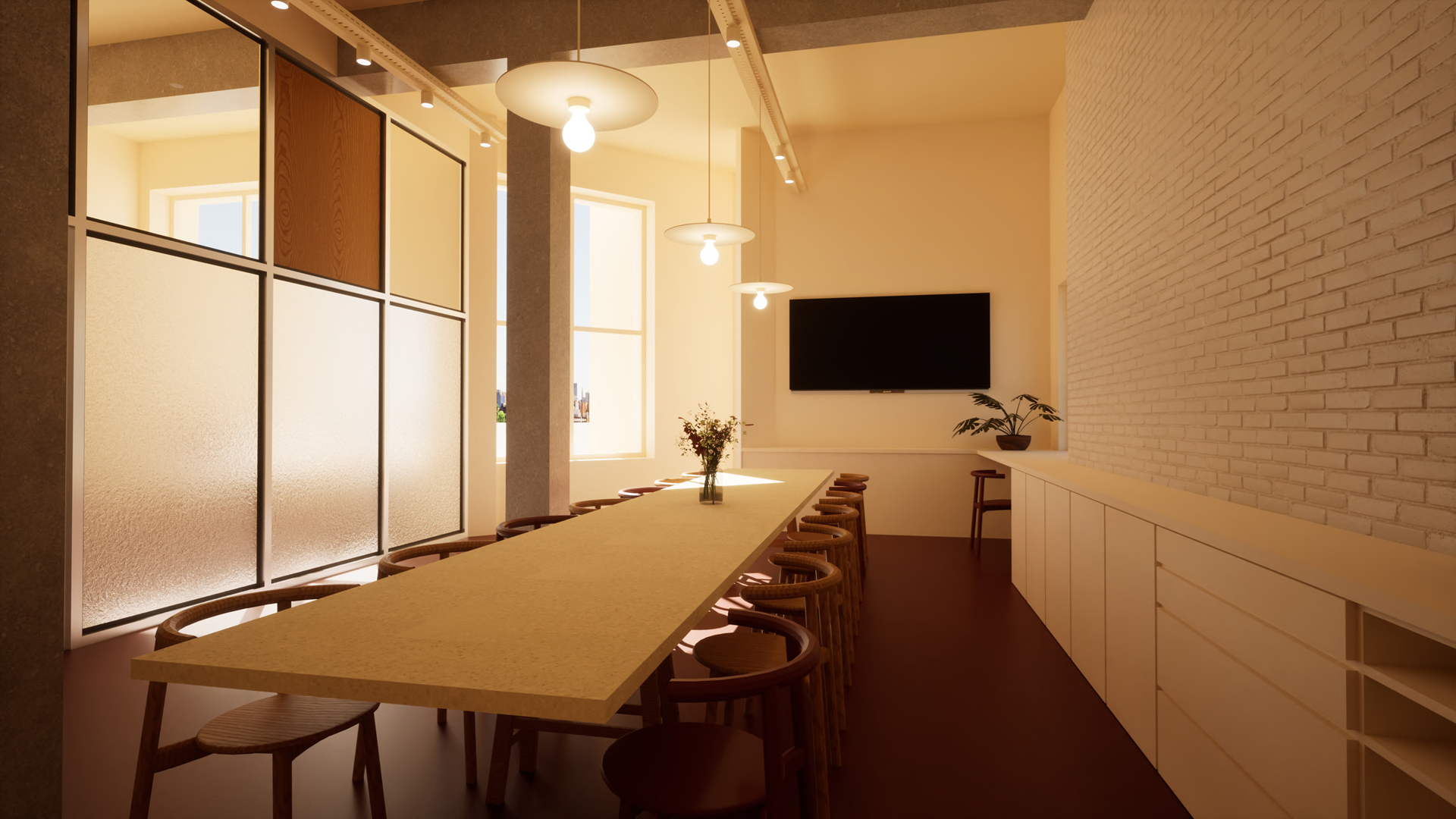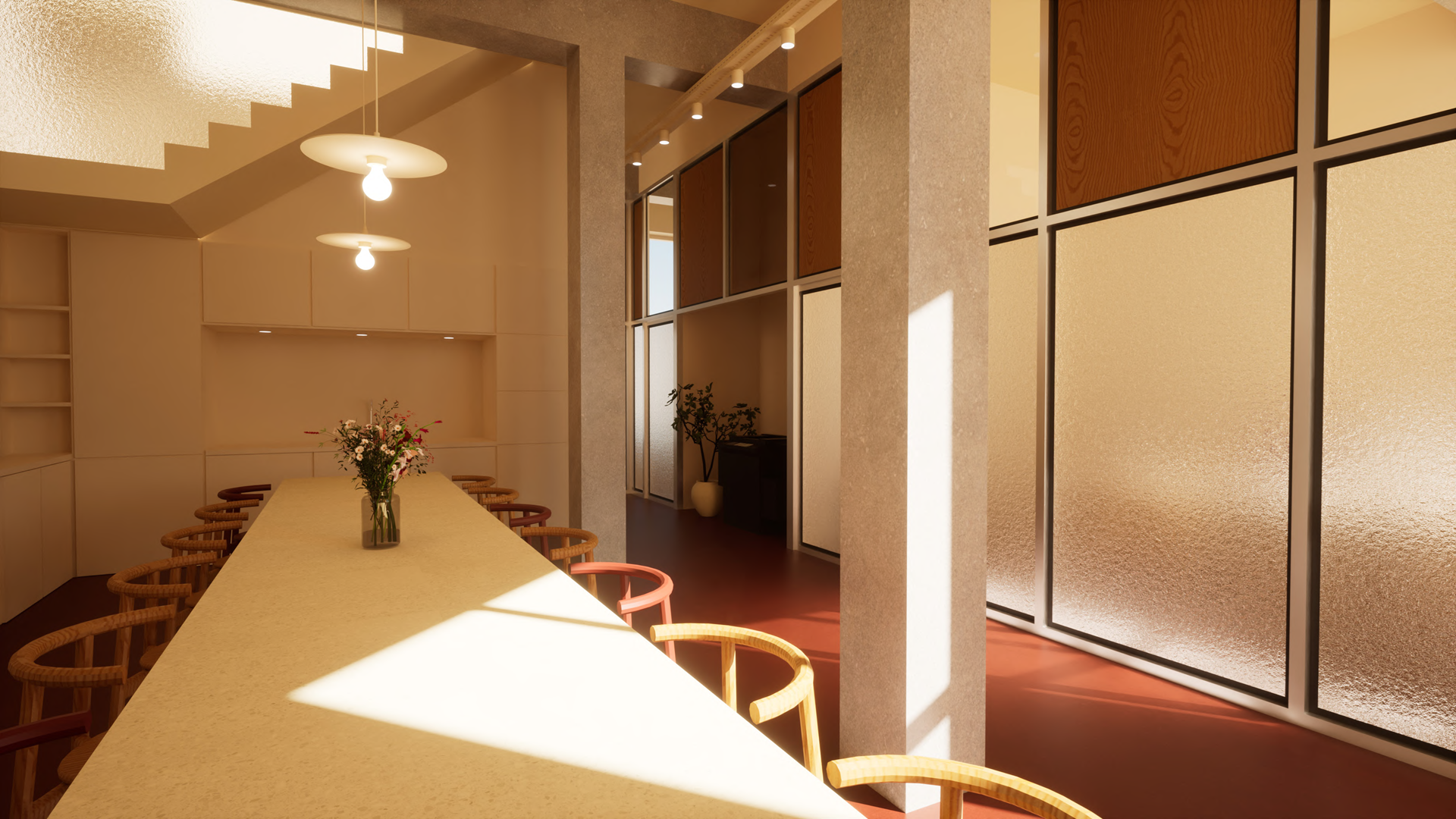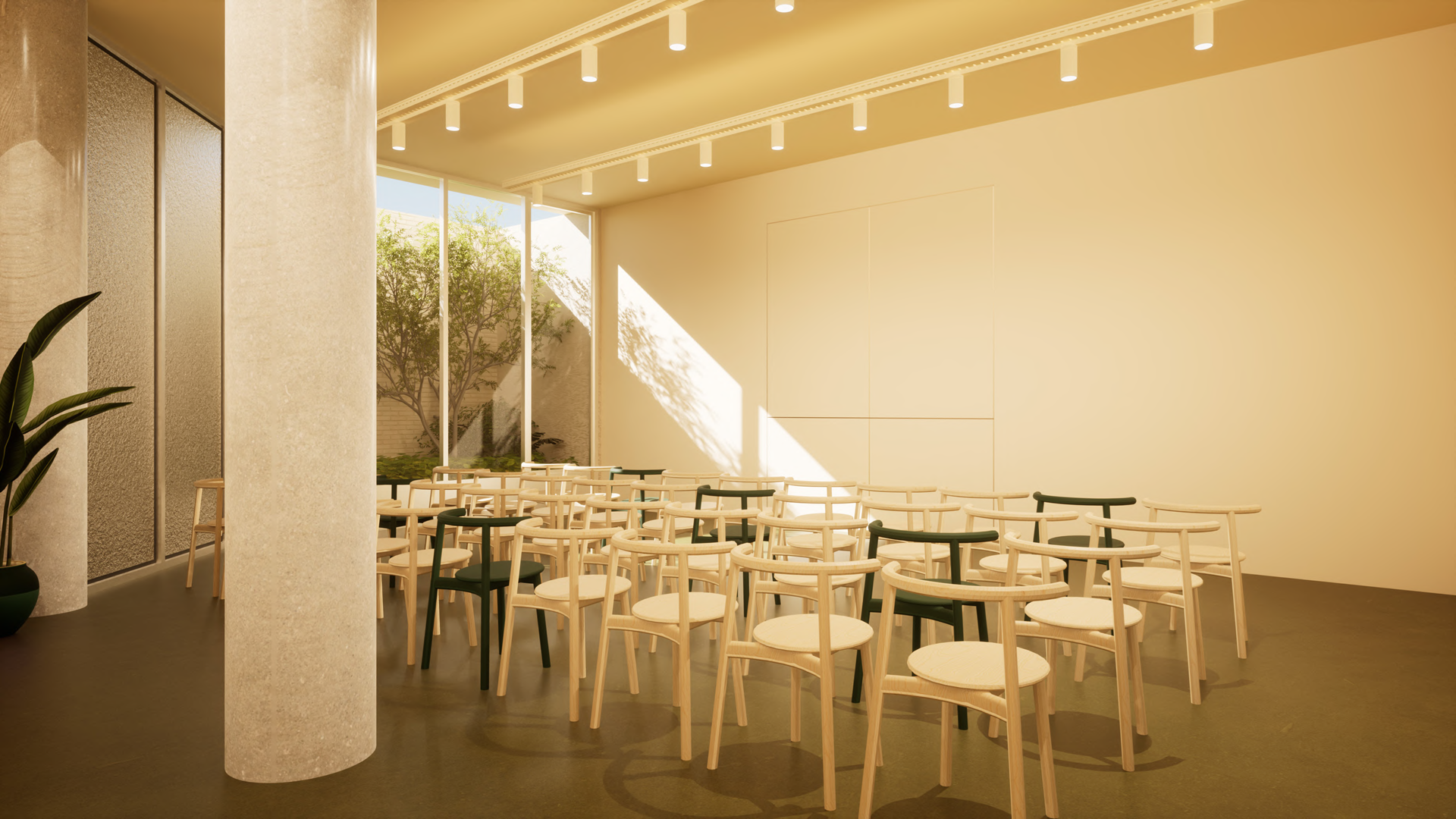 Het gelijkvloers zal niet langer plaats bieden aan enkel een polyvalente zaal die alle organisaties in het gebouw kunnen gebruiken, maar ook aan een aangename receptieruime en een patio die meer licht binnenbrengt.