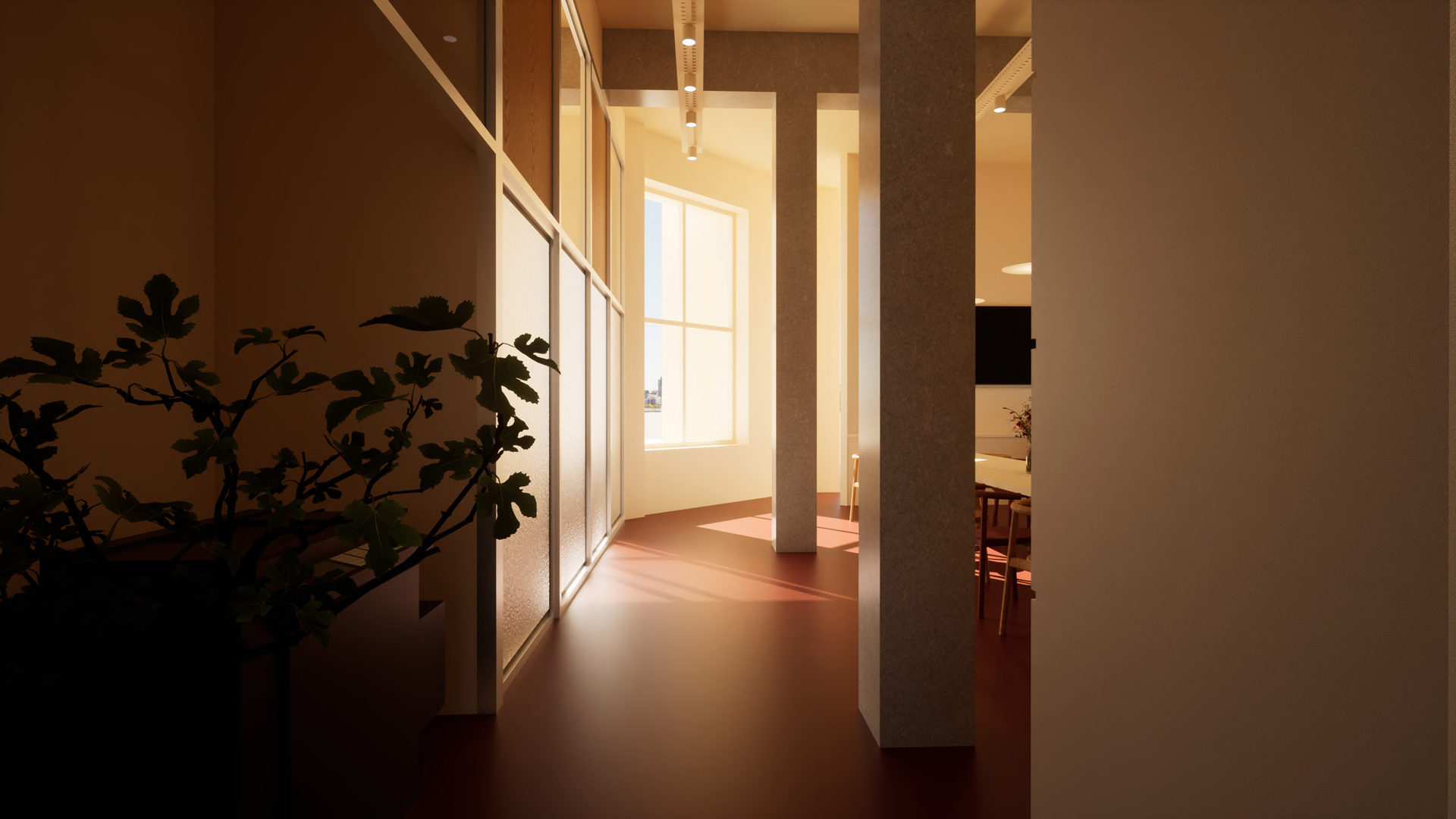 De kantoorruimtes op de eerste en tweede verdieping werden dan weer grondig herontworpen zodat een betere samenwerking tussen de verschillende organisaties mogelijk wordt. In de kantoren, waar valse plafonds en een krappe verdeling vandaag de hoge verdiepingsvloeren verdoezelen die het van oorsprong industriële gebouw kenmerken, wil Moyaert Van Buyten Architects ook de historische gevoelswaarde herstellen. De kantoren worden, onder meer met een tactische vergroting van enkele raamopeningen en een lichtdoorlatende opdeling met serreprofielen met gehamerd glas, tot slot ook aangepast aan de hedendaagse eisen en zo toekomstbestendig gemaakt. Aan dat laatste draagt ook mogelijkheid bij om ooit een inbreiding te realiseren.