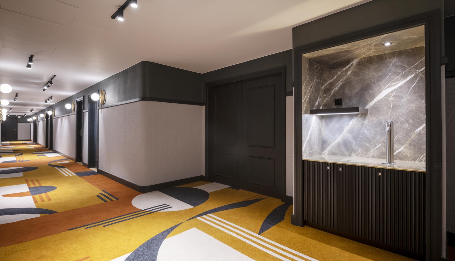 In de openbare ruimtes kan men de op maat gemaakte chevronvloeren uit het Art Deco-tijdperk ontdekken. Deze zijn uitgevoerd met luxe vinyltegels van de iD Inspiration collectie. De gangen zijn bedekt met op maat gemaakte design Axminster tapijten.